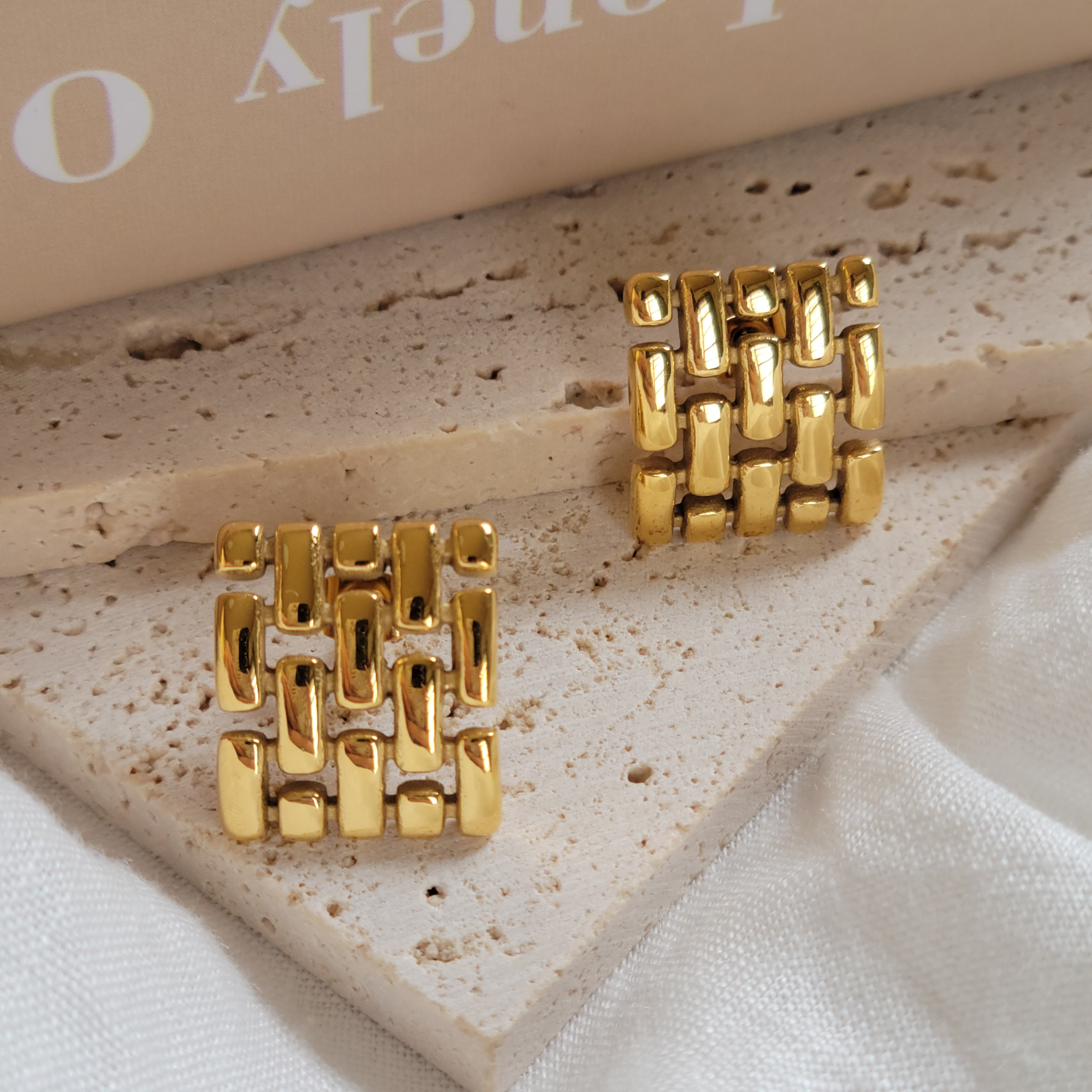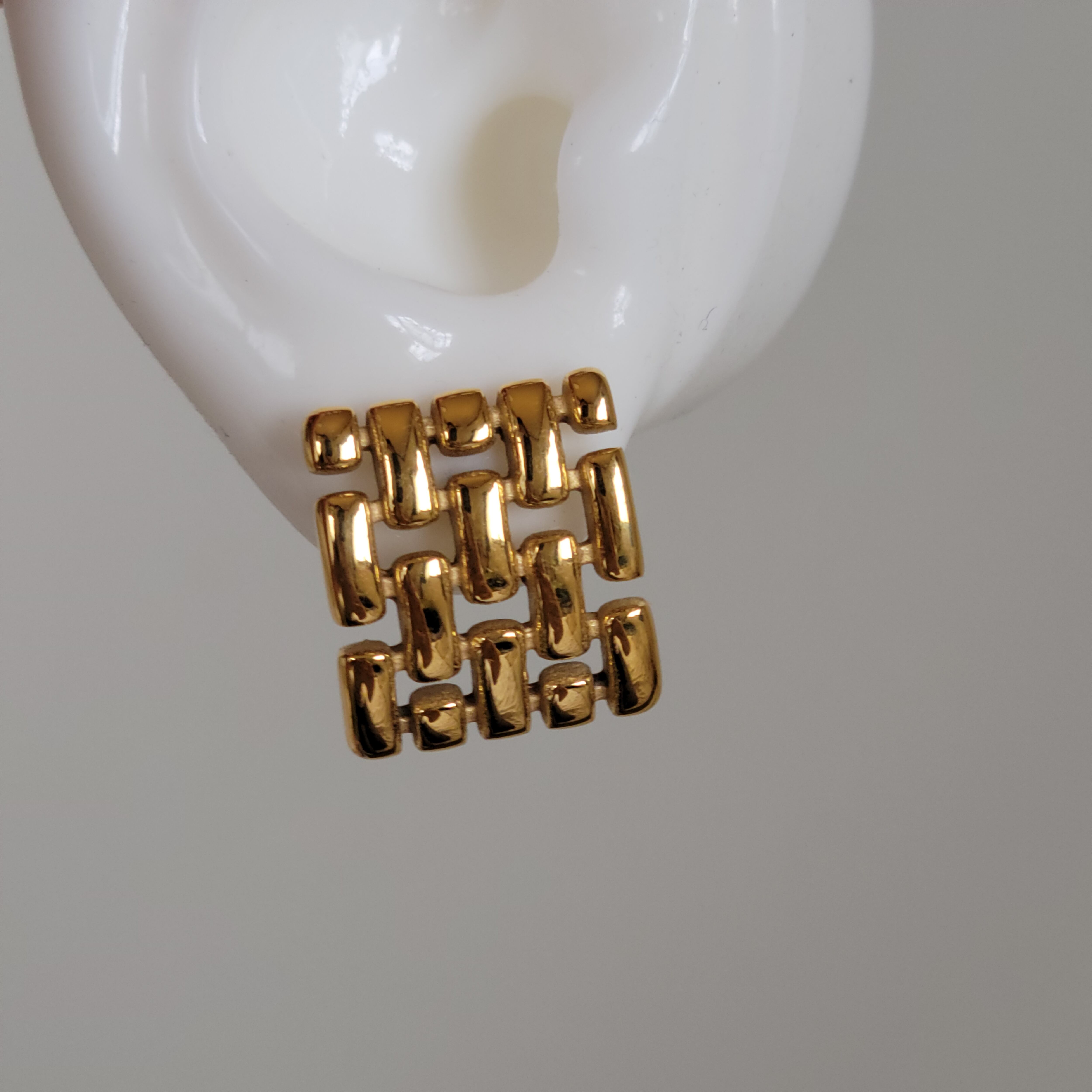 #024 Refined Square Pierce | スクエア デザイン ゴールド ヴィンテージ ピアス レディース ステンレス 18K GP 上質 大人 海外風 海外スタイル フレンチ シック ヨーロッパ 金属アレルギー対応 ゴールドアクセサリー