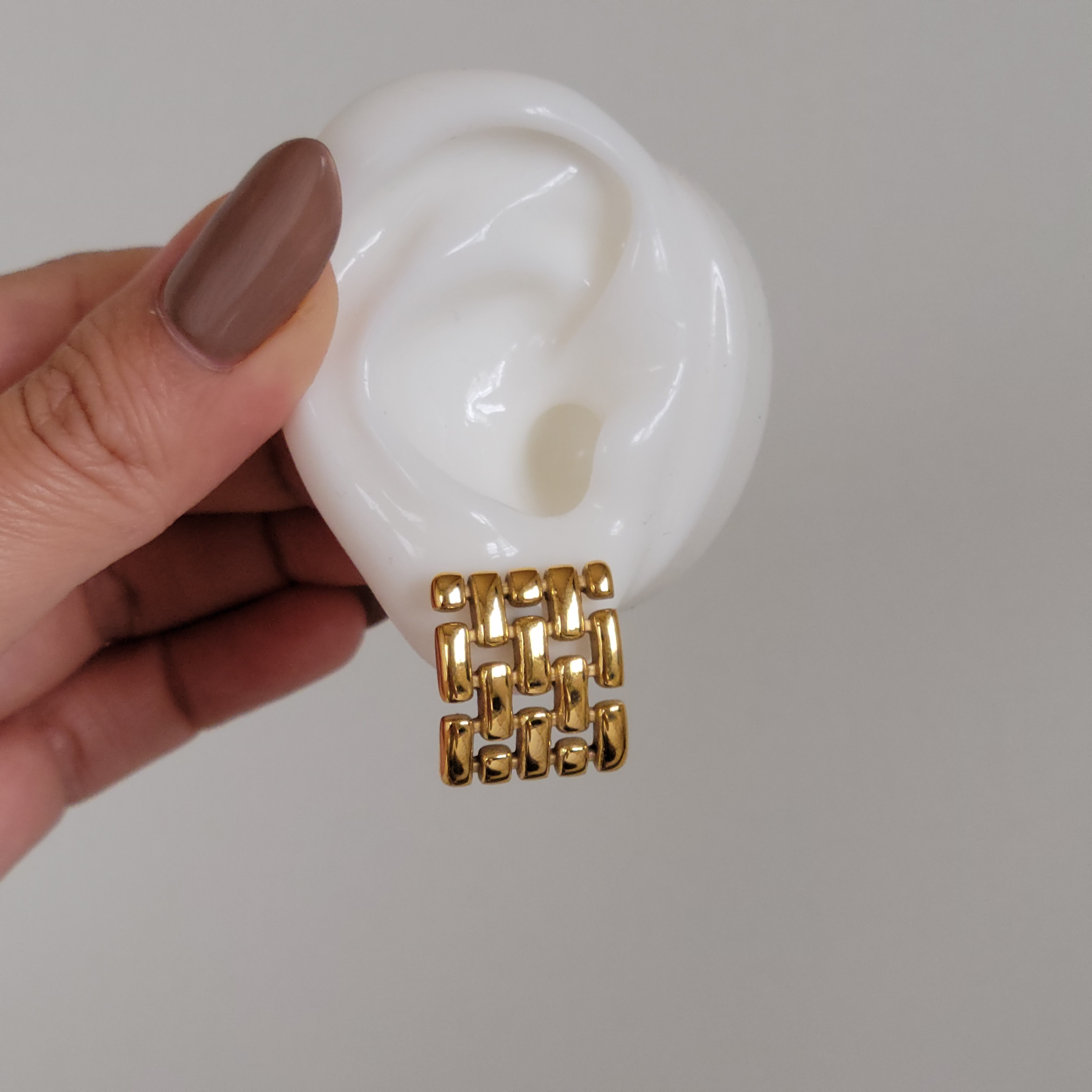 スクエアシェイプに繊細なディテールを刻んだ、エッジの効いたデザインピアス。