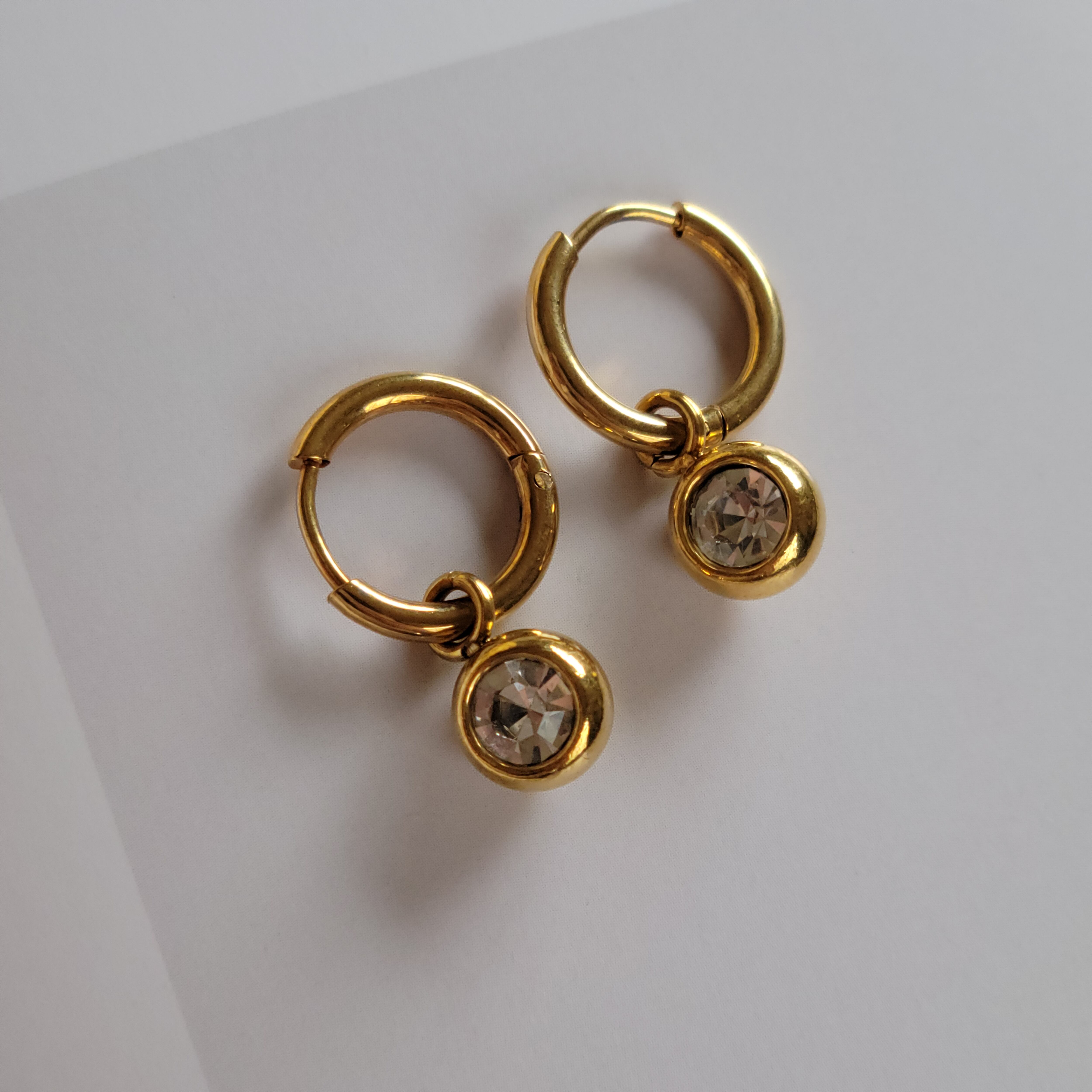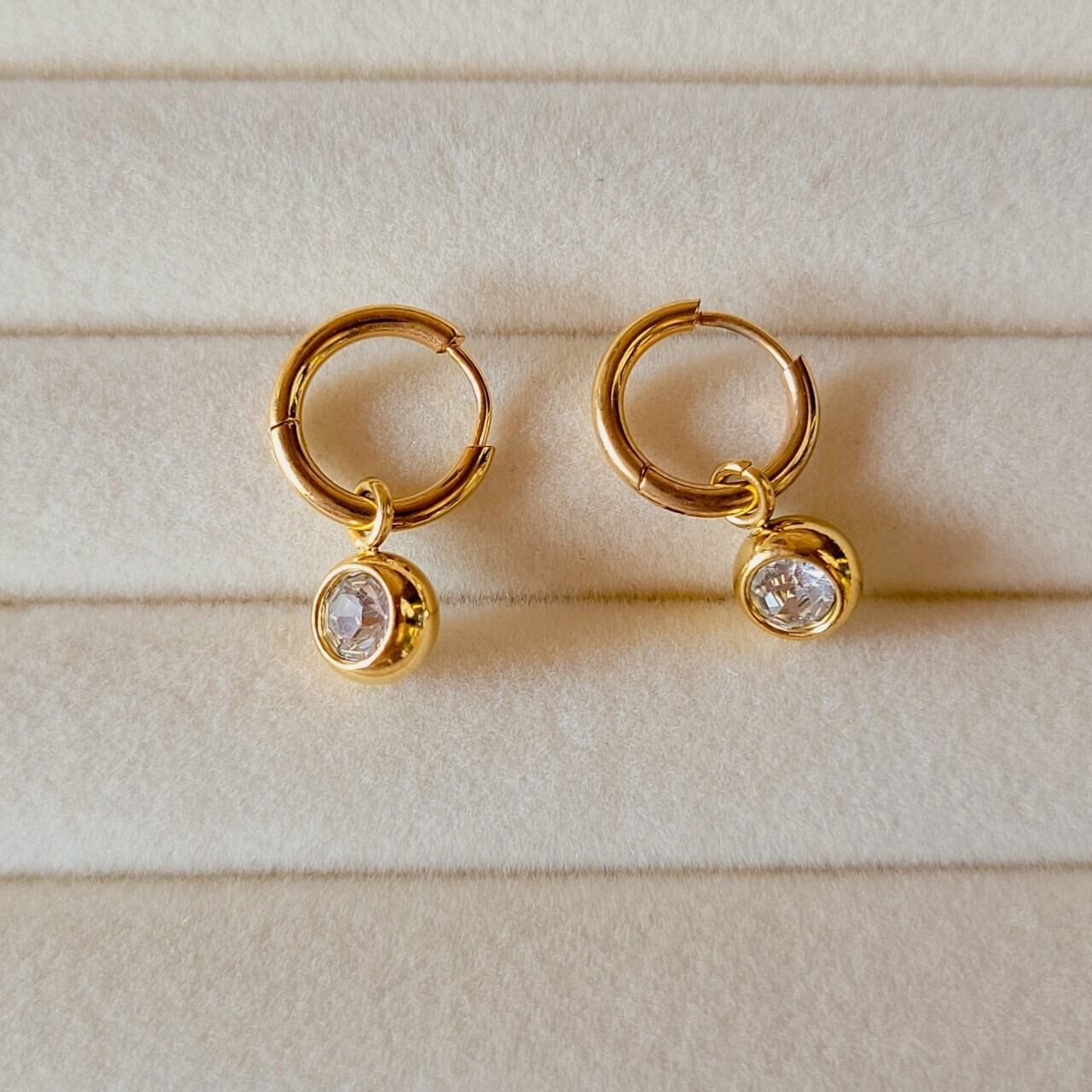 【受注販売】#029 Brilliant Drop Earrings | 一粒 ジルコン ドロップダウン ピアス キャッチレス レディース ゴールド ステンレス ジルコニア ストーン 18K GP ミニ フープ 大人 海外風 海外スタイル 金属アレルギー対応 ゴールドアクセサリー | Ork Marry|金属アレルギー対応 大人の海外風アクセサリー