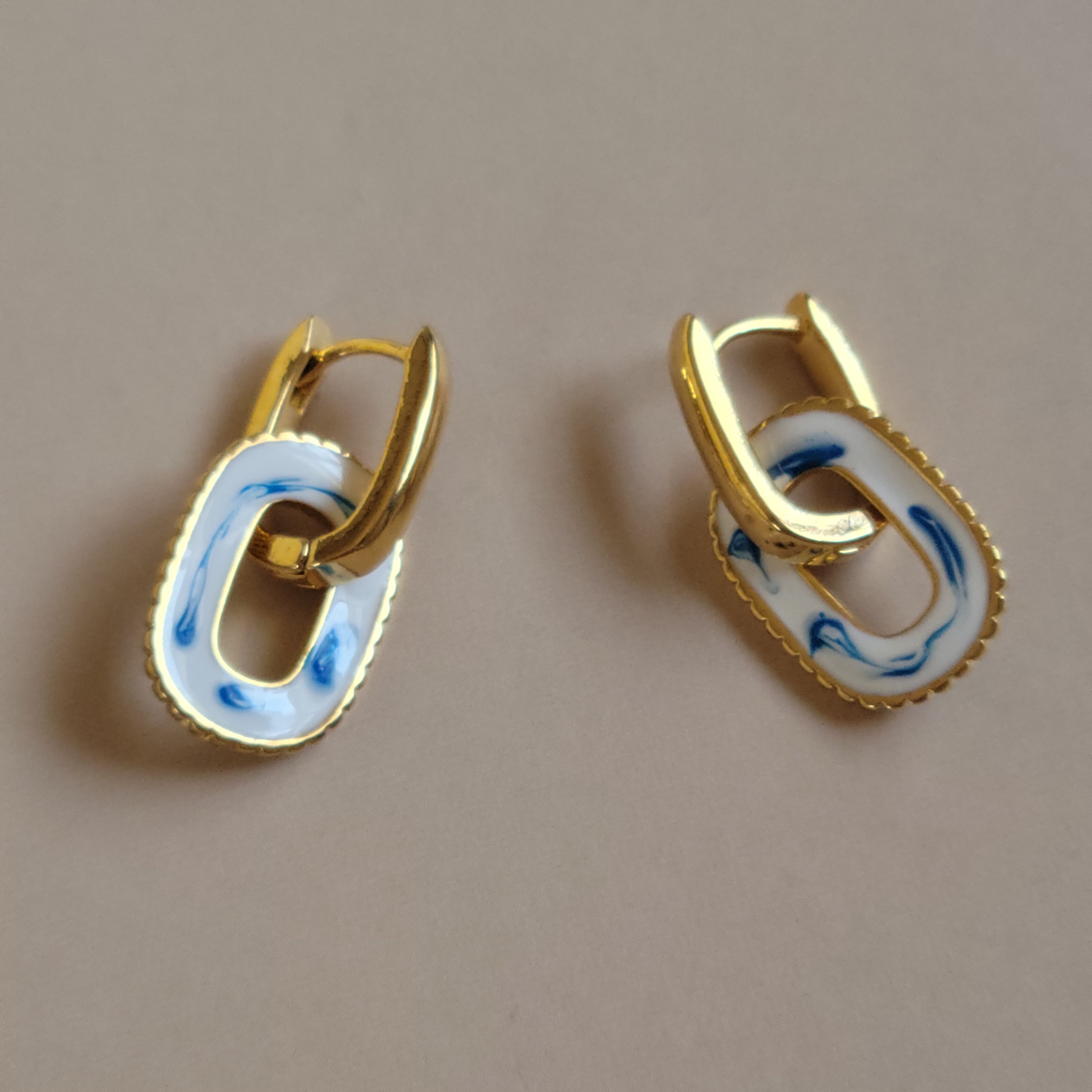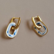 Porcelain Flow Oval Earrings|Stainless × 18KGP|2.5cm