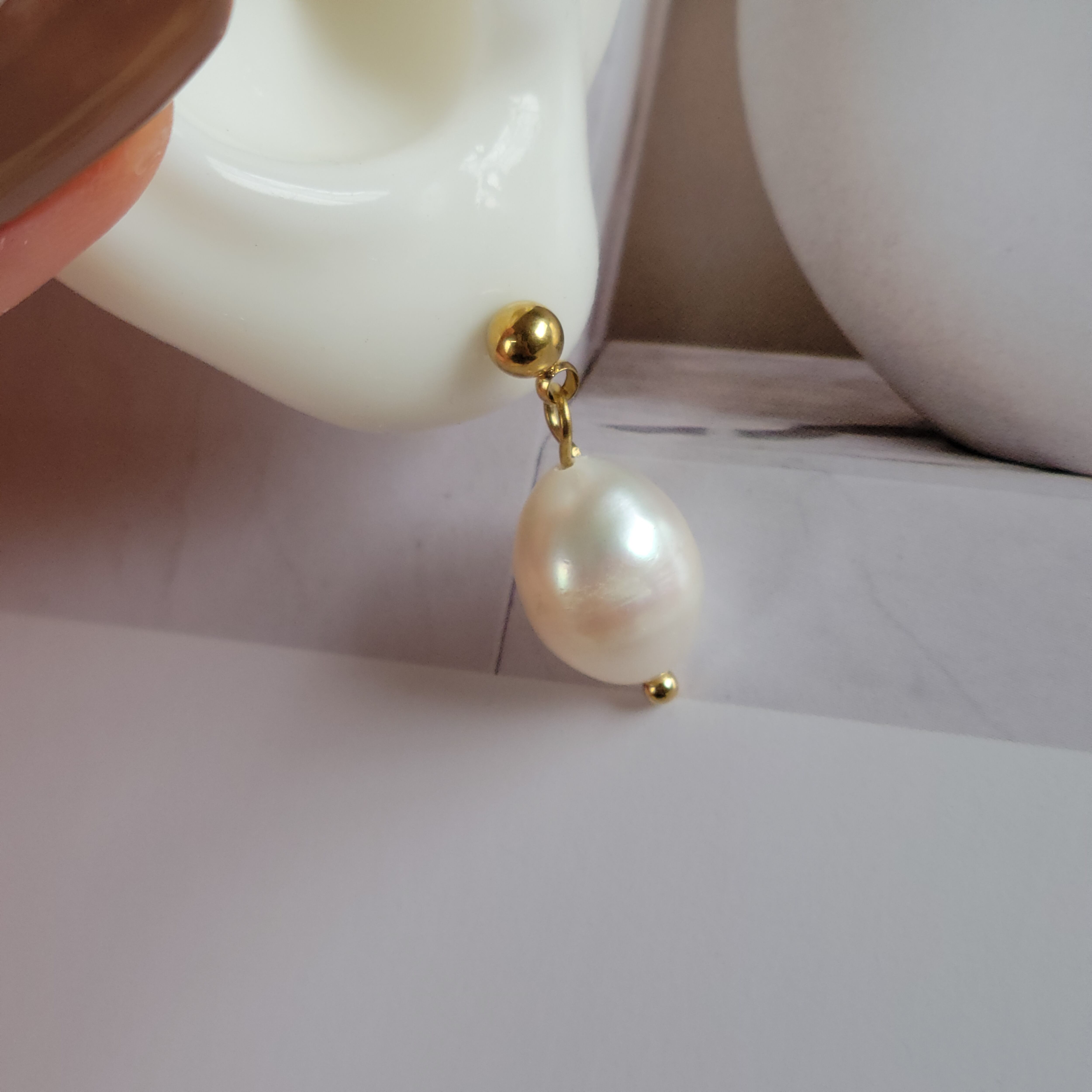 Luna Pearl Drop Earrings|Stainless × 14KGP|1.2cm