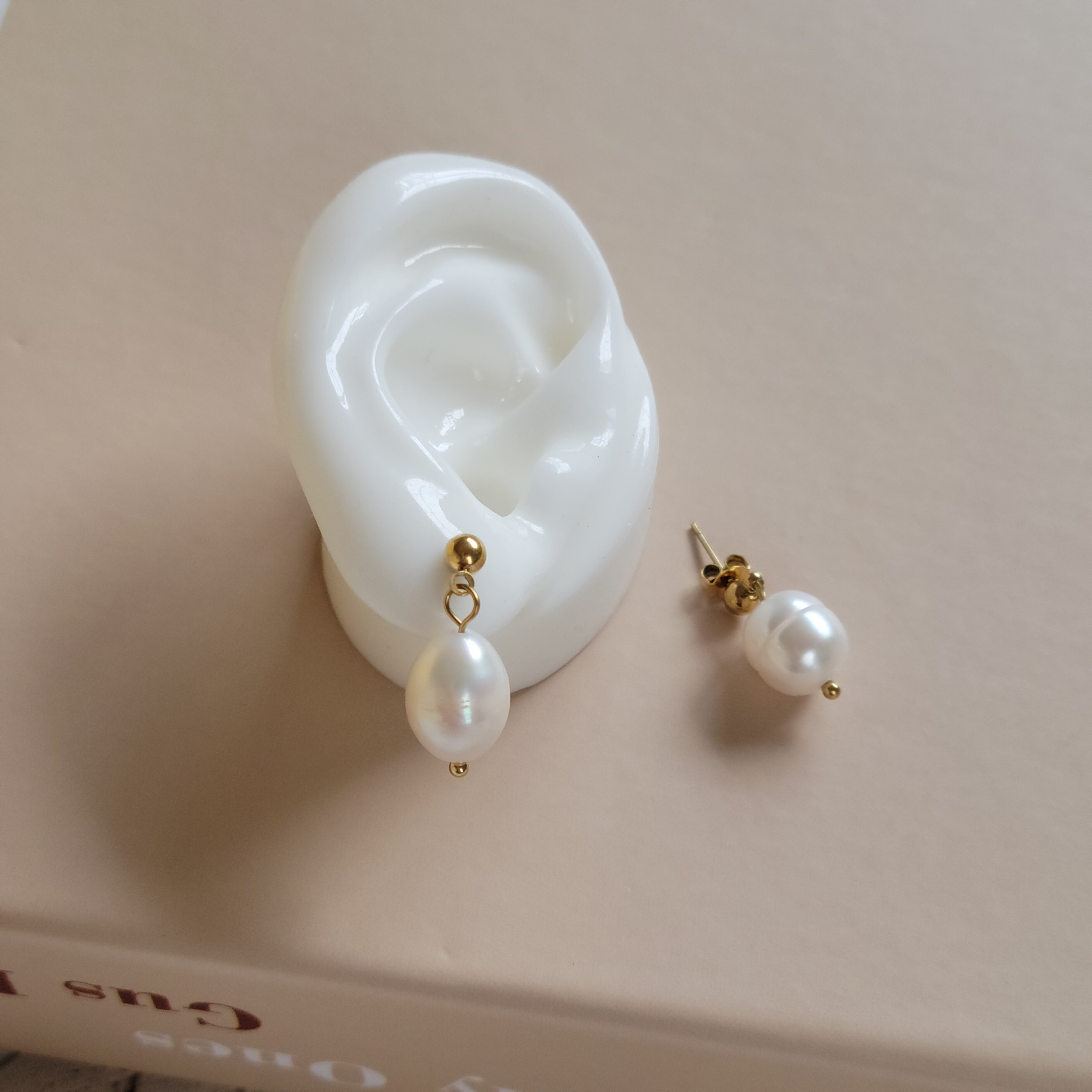 #032 Luna Pearl Drop Earrings | 揺れる 淡水パール ピアス 一粒 ドロップダウン レディース ステンレス ゴールド 上品 大人 海外風 海外スタイル 金属アレルギー対応 ゴールドアクセサリー | Ork Marry|金属アレルギー対応 大人の海外風アクセサリー
