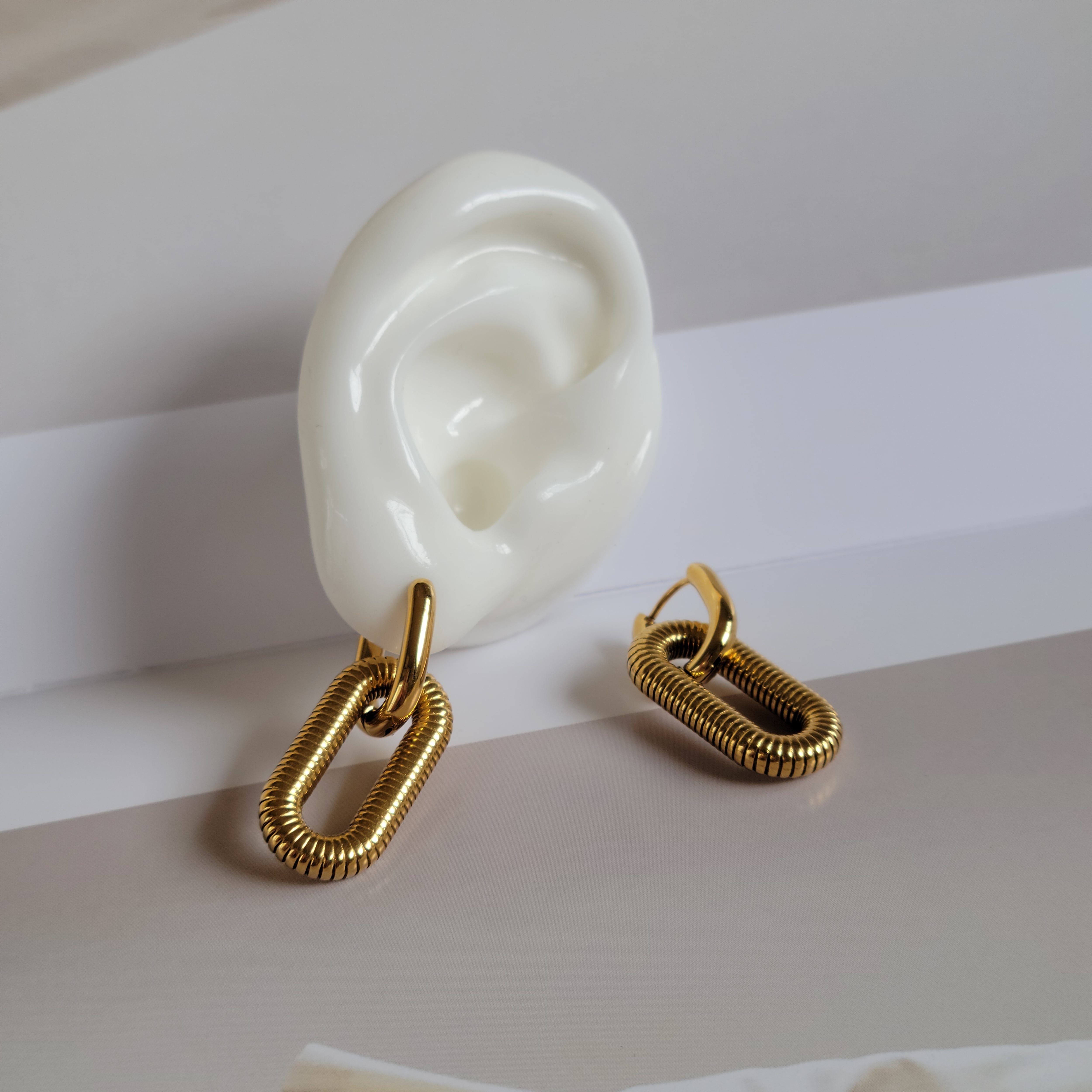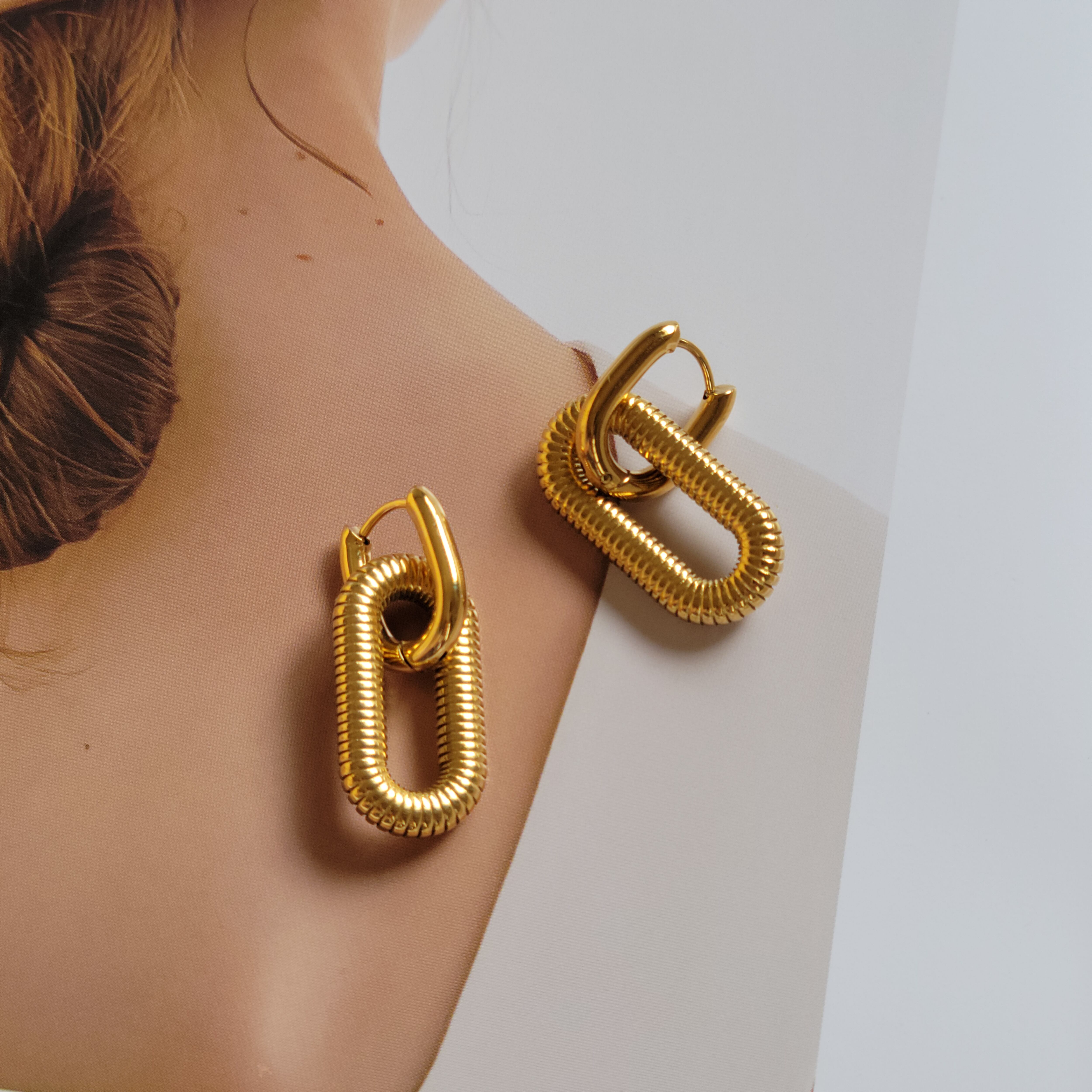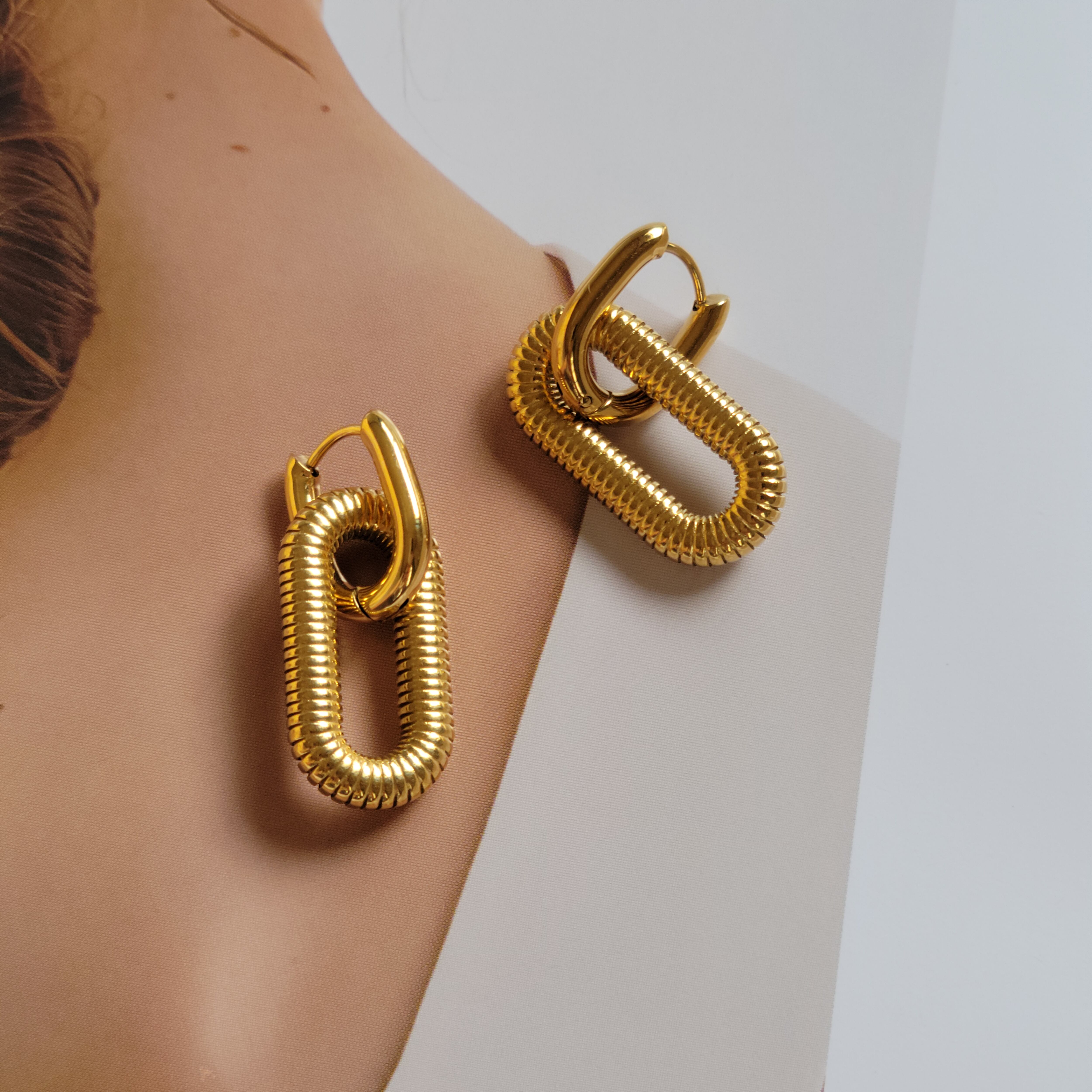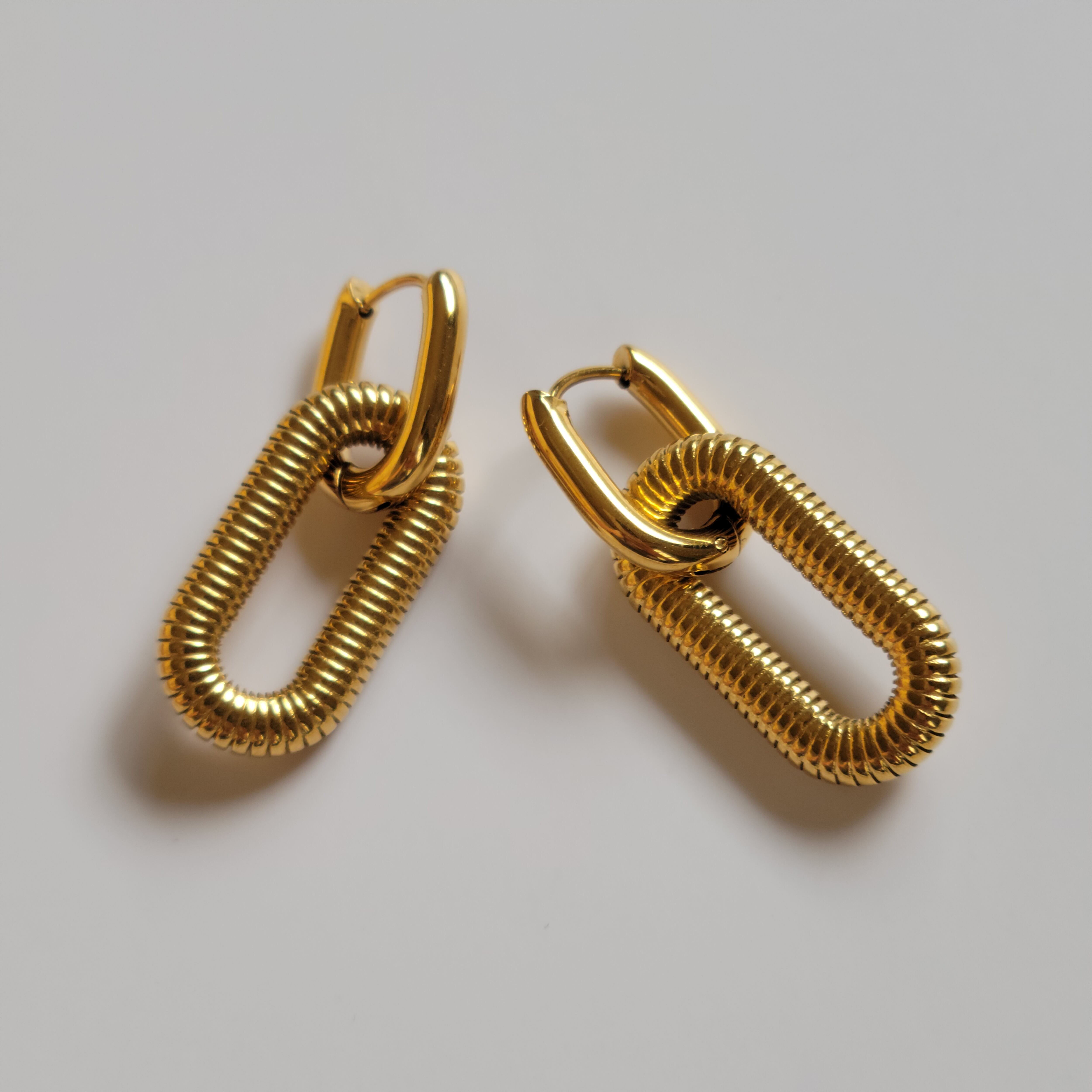 Textured Link Hoop Earrings|18KGP Stainless Steel|3cm × 1.3cm