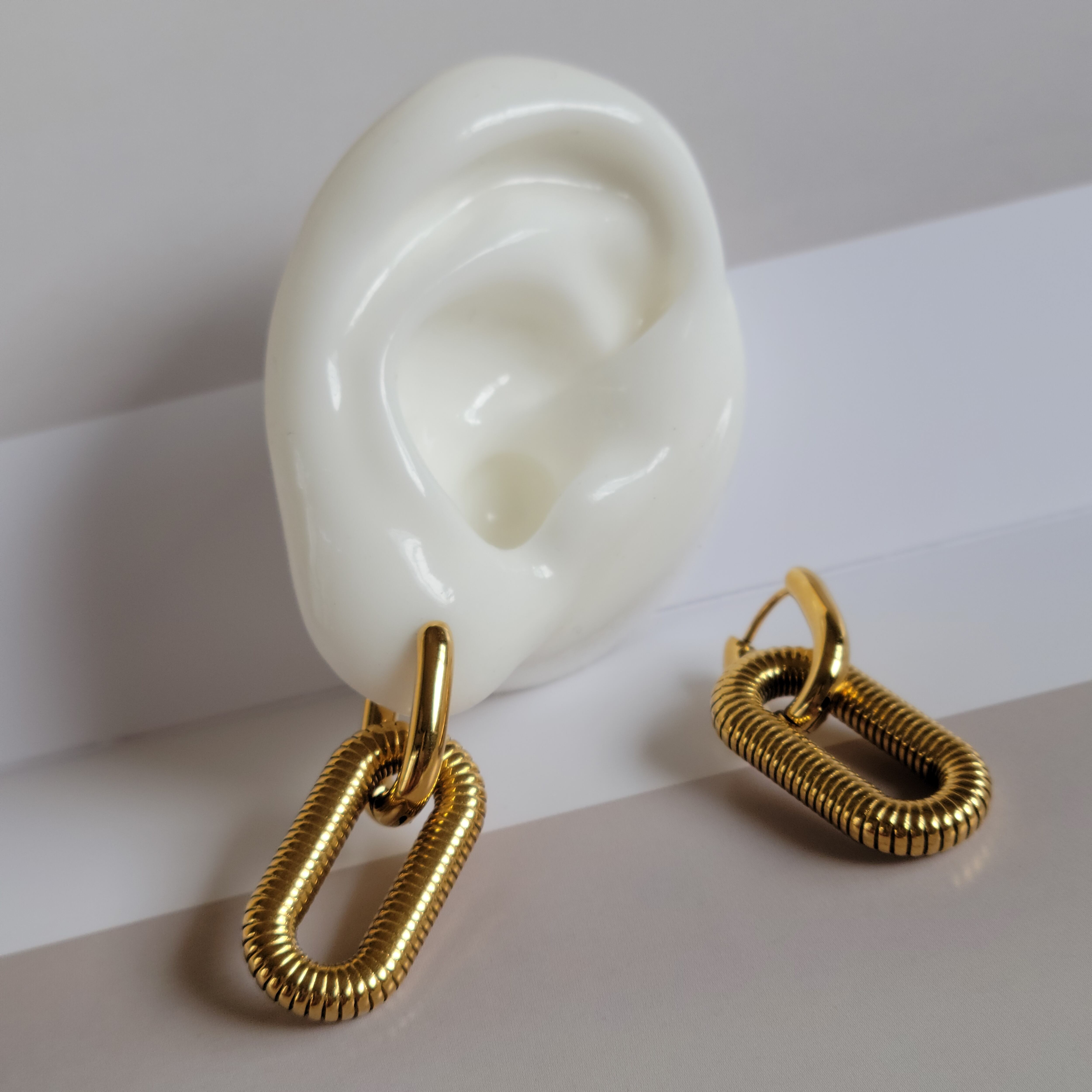 # 035 Textured Link Hoop Earrings|ゴールド チェーン フープ オーバル ピアス レディース シンプル 大人 海外 ステンレス 金属アレルギー対応 18KGP Stainless Steel 海外風 海外スタイル キャッチレス ゴールドアクセサリー | Ork Marry|金属アレルギー対応 大人の海外風アクセサリー