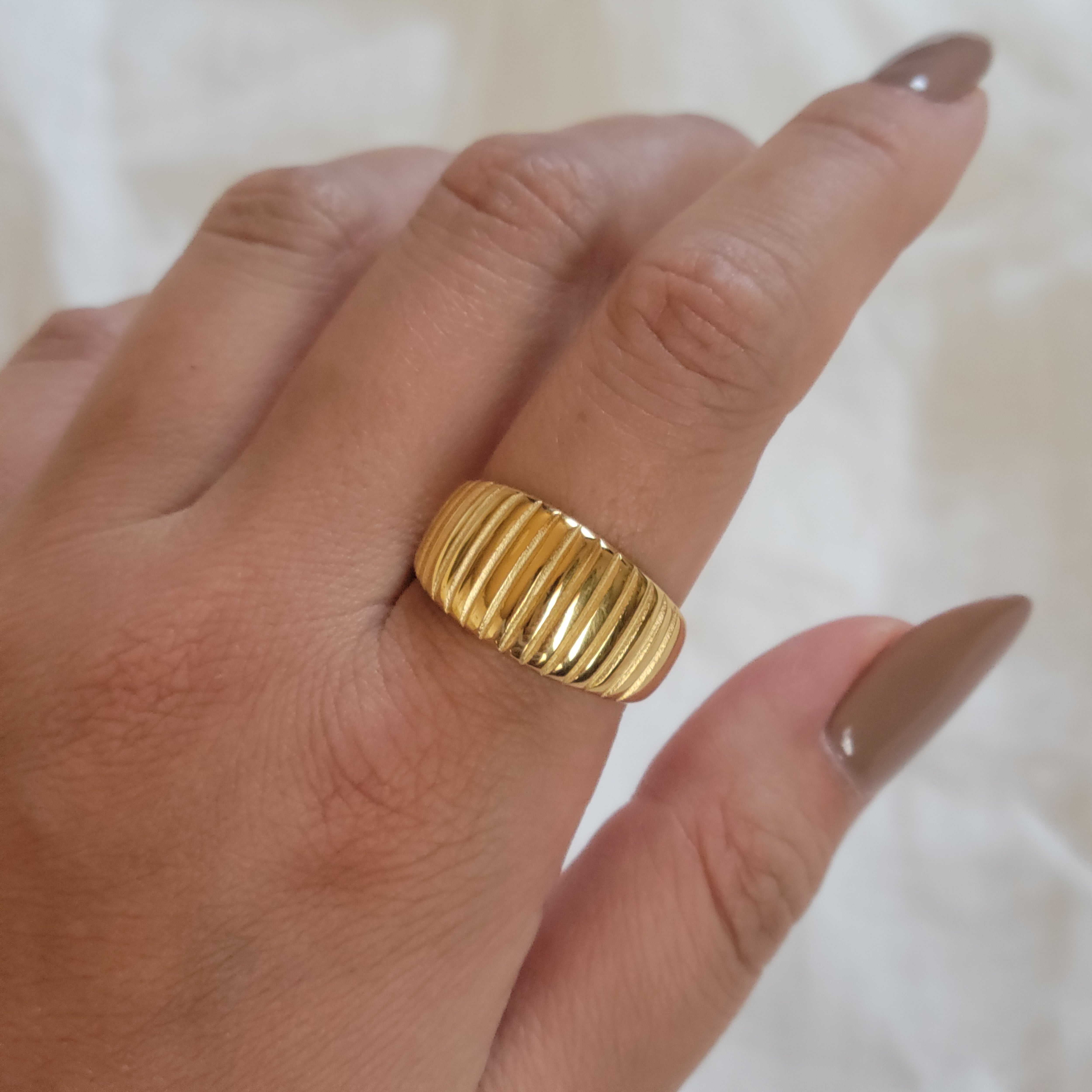 #Classic Ribbed Ring|18KGP on Stainless|ステンレス ゴールド リング レディース アクセント シンプル 大人 海外風 金属アレルギー対応 18KGP アクセサリー 指輪 プレゼント ギフト デイリー ゴールドアクセサリー | Ork Marry|金属アレルギー対応 大人の海外風アクセサリー