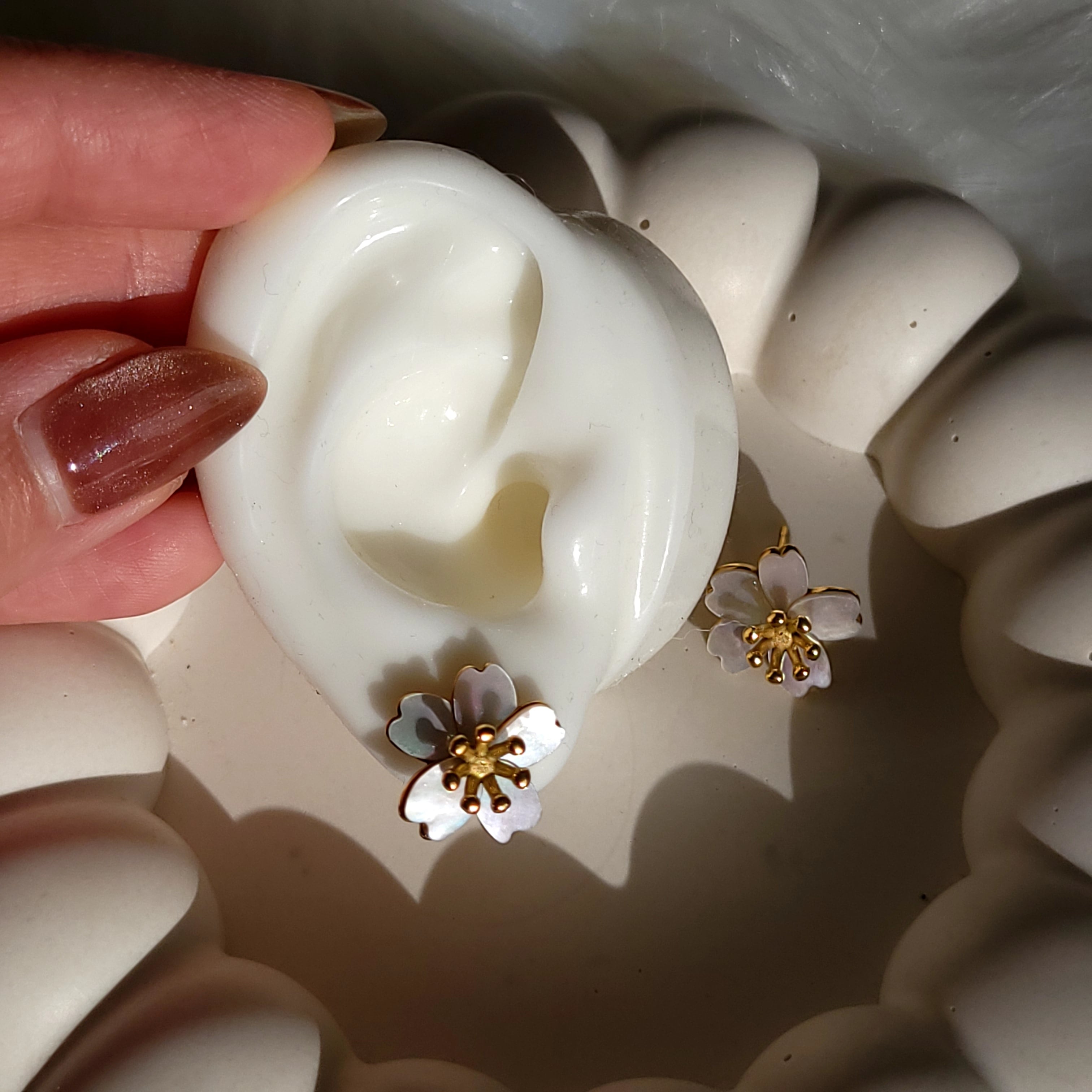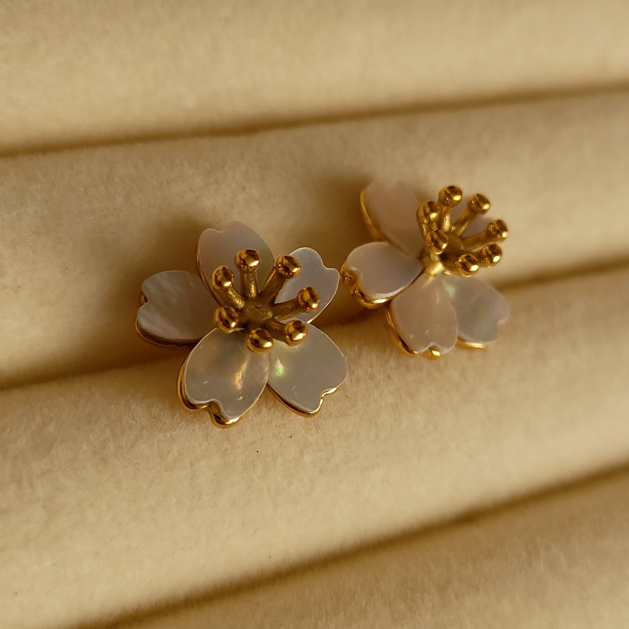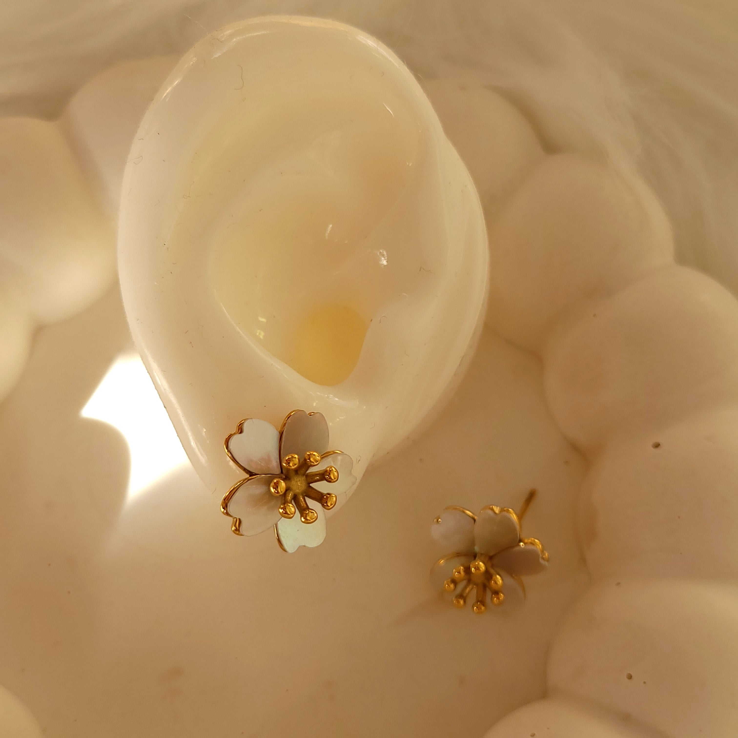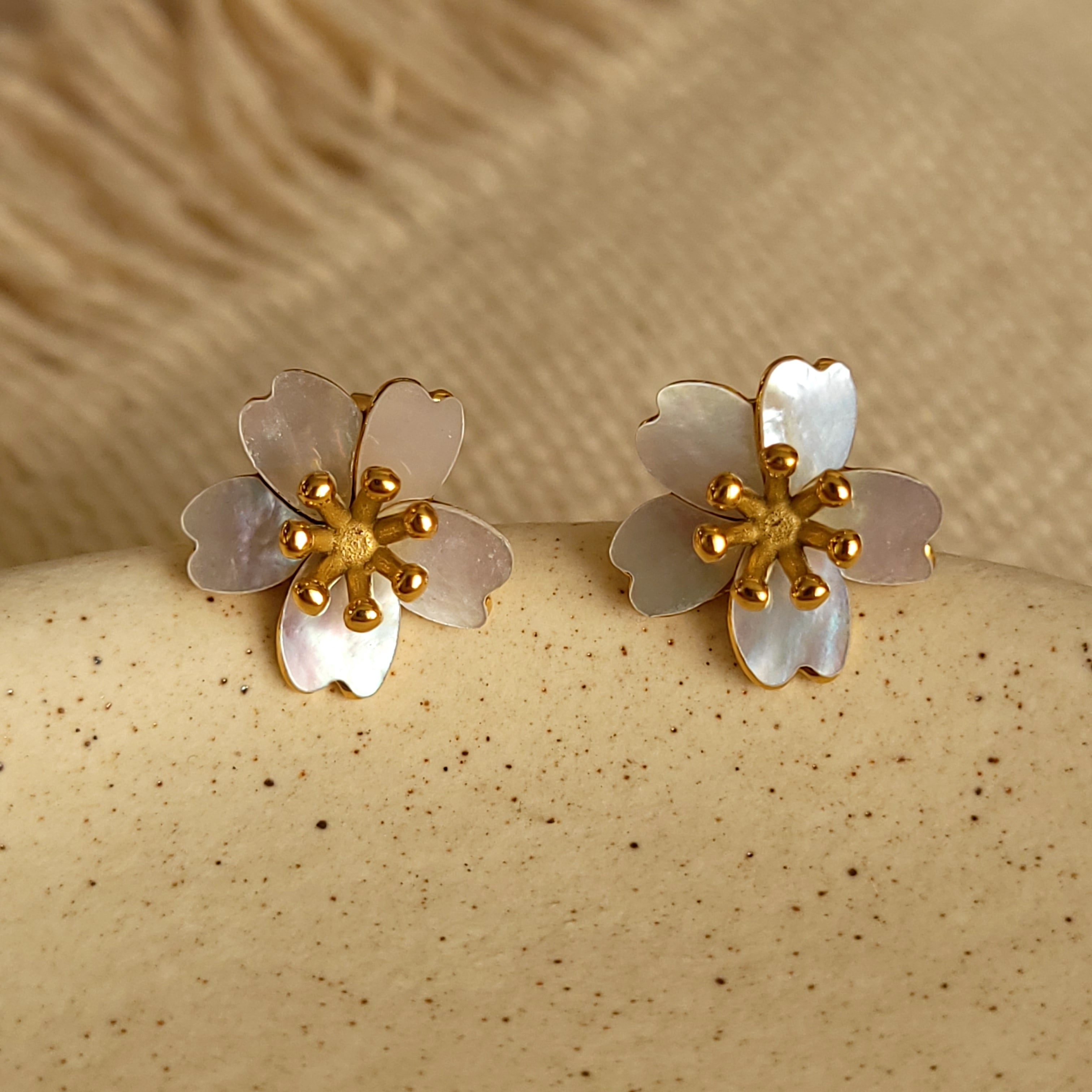 【新作】#051 Sakura Shell Bloom Earrings | サクラ 花 桜 モチーフ ピアス レディース ゴールド 大人 きれいめ カジュアル アクセサリー | Ork Marry|金属アレルギー対応 大人の海外風アクセサリー