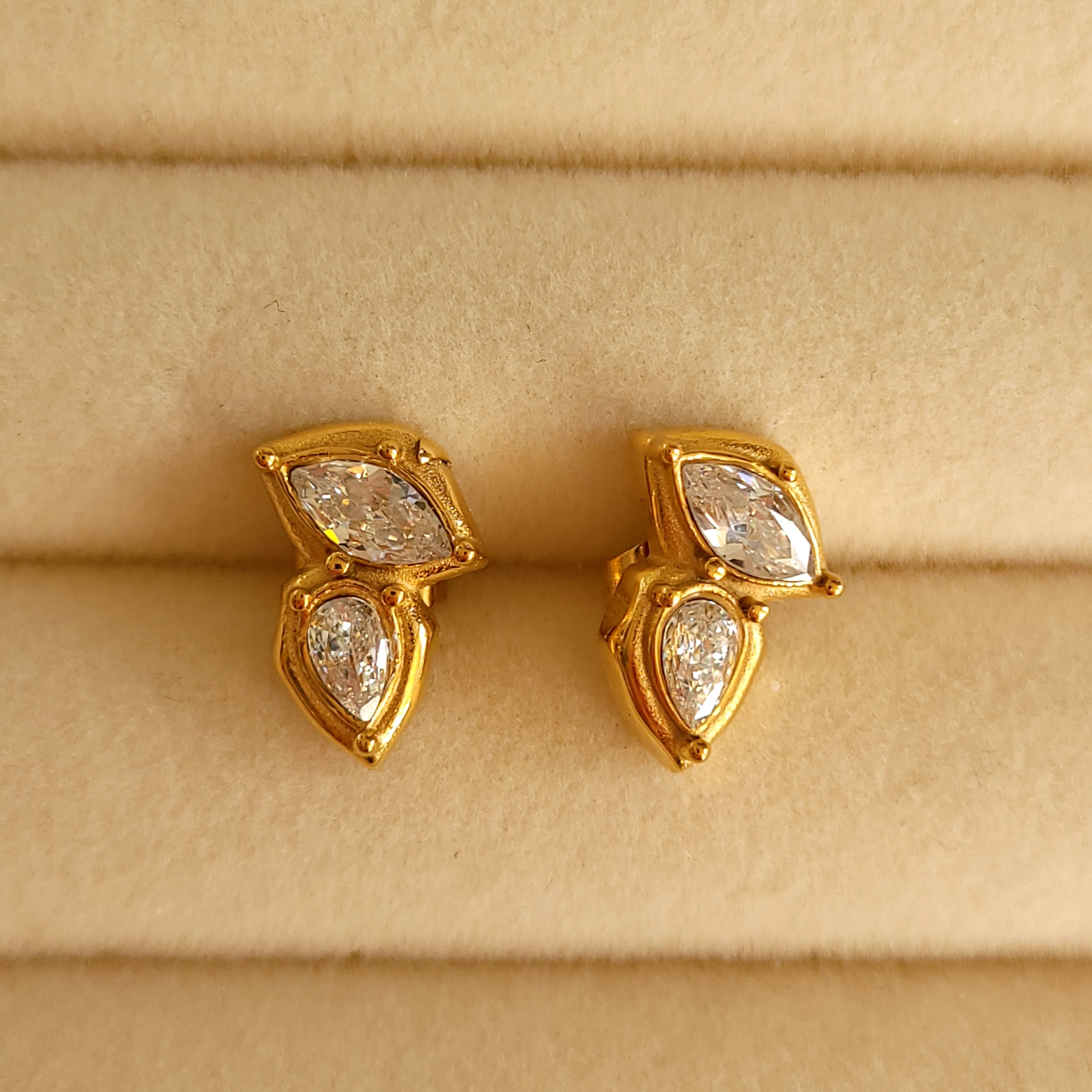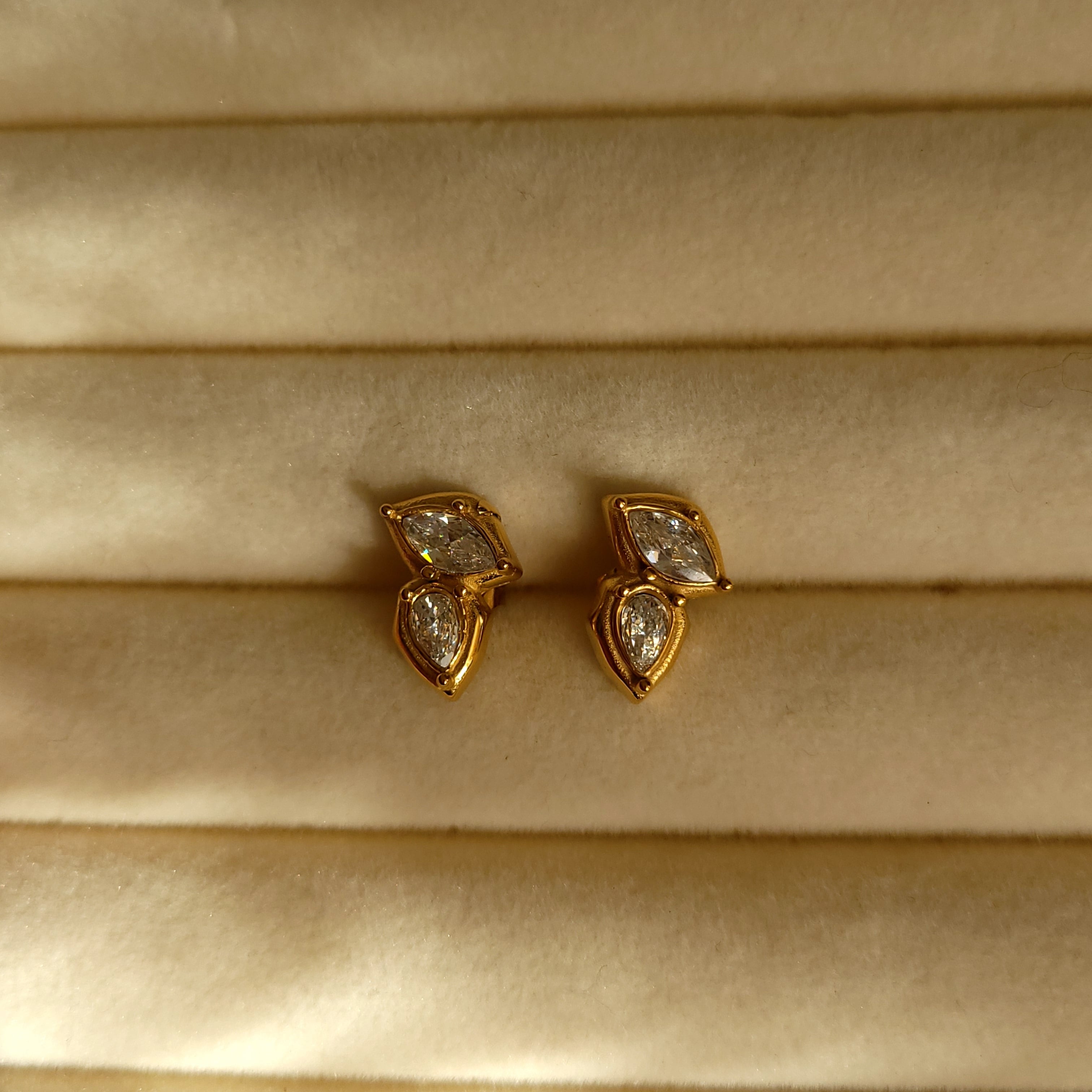 【新作】#052 Petal Light Stud Earrings | マーキス ジルコニア ピアス ゴールド レディース 大人 きれいめ カジュアル 海外風 欧米風 アクセサリー | Ork Marry|金属アレルギー対応 大人の海外風アクセサリー