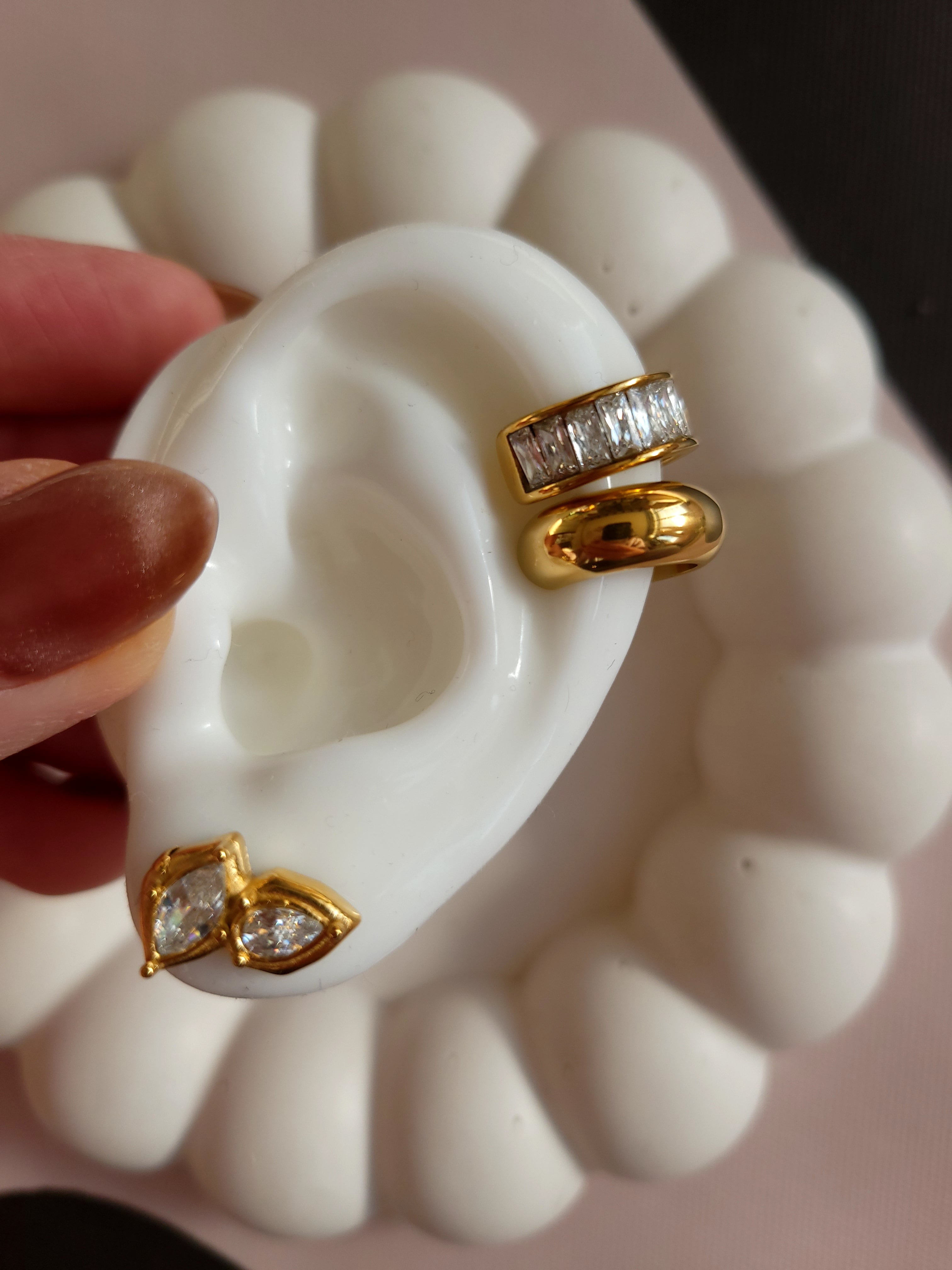 透明感のあるストーンを重ねたミニマルなデザインピアス。