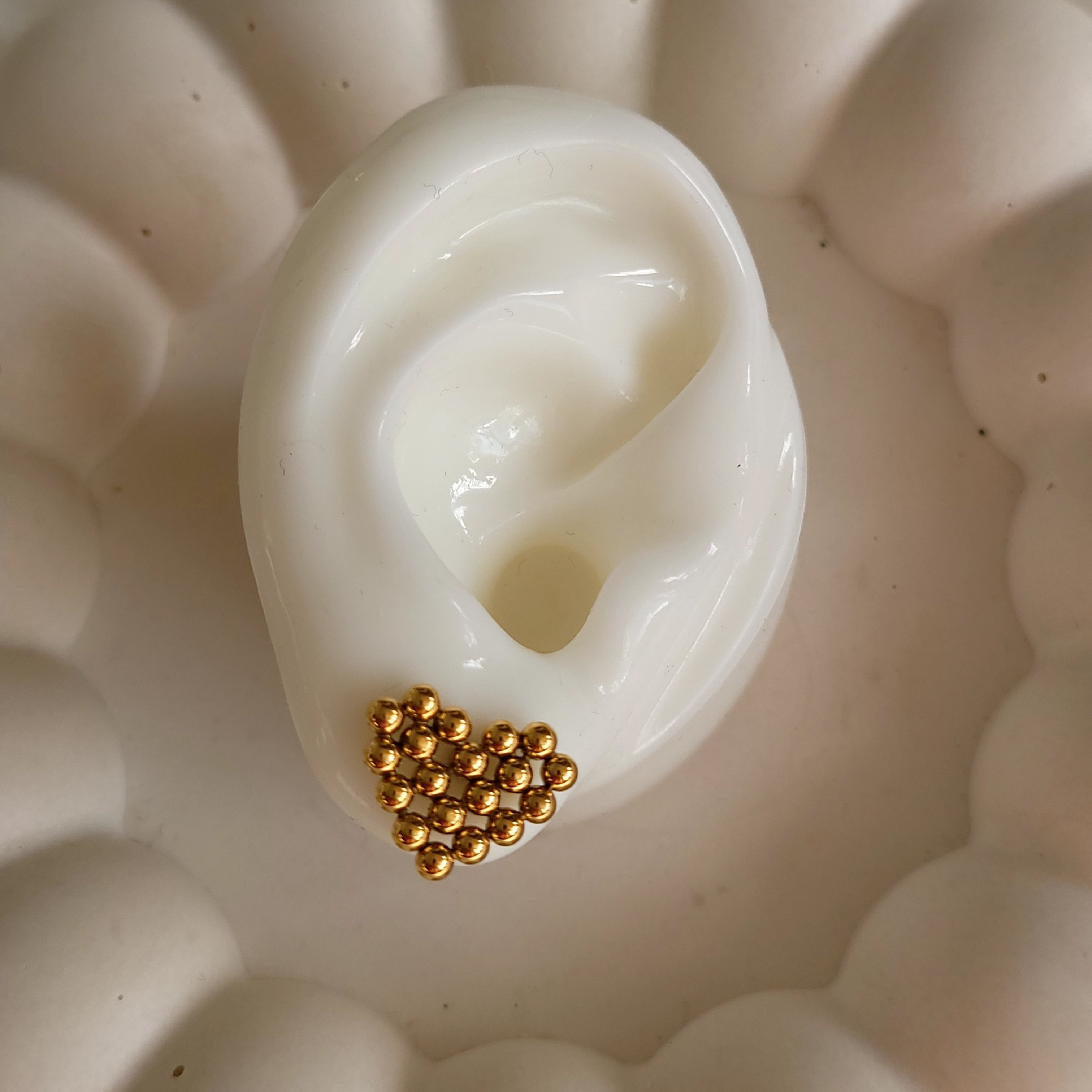 【新作】#053 Golden Beads Cluster Earrings | ゴールド ハート ビーズ ボール ドット モチーフ レディース ピアス ステンレス 大人 カジュアル 欧米風 海外風 アクセサリー | Ork Marry|金属アレルギー対応 大人の海外風アクセサリー