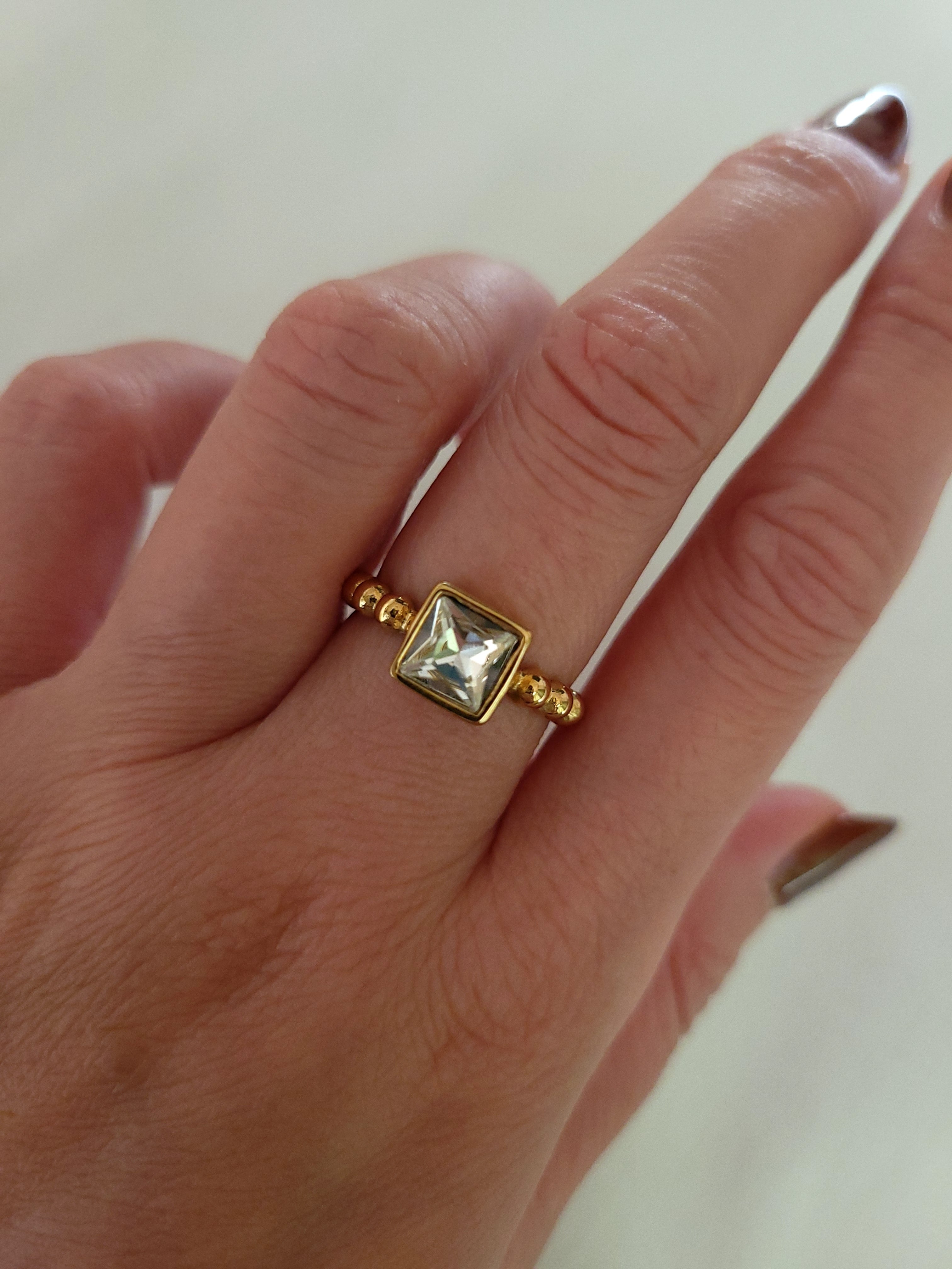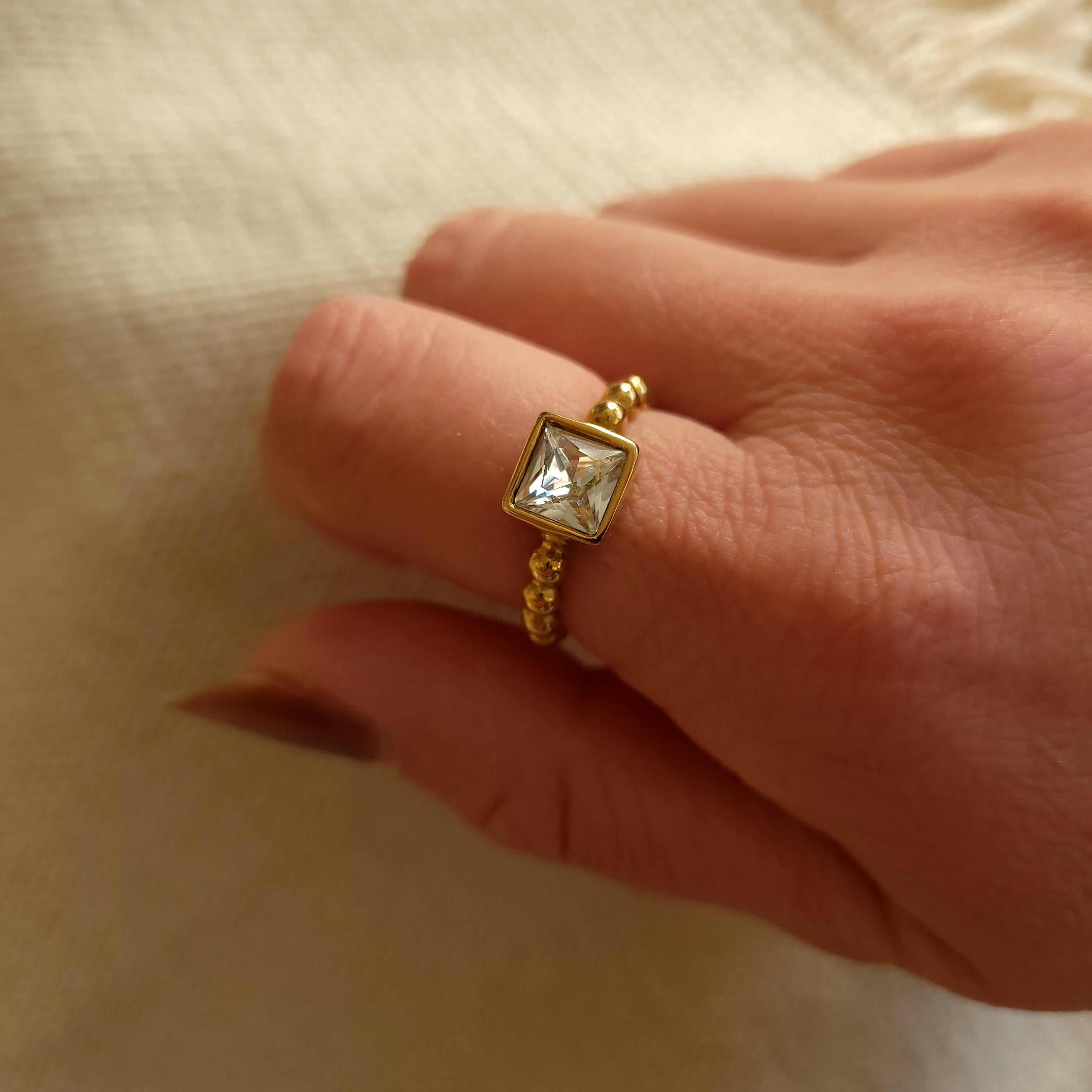 #056 Beaded Square Zirconia Ring|ジルコニア スクエア カット 一粒 ゴールド リング レディース ステンレス 海外風 欧米風 大人 カジュアル アクセサリー | Ork Marry|金属アレルギー対応 大人の海外風アクセサリー