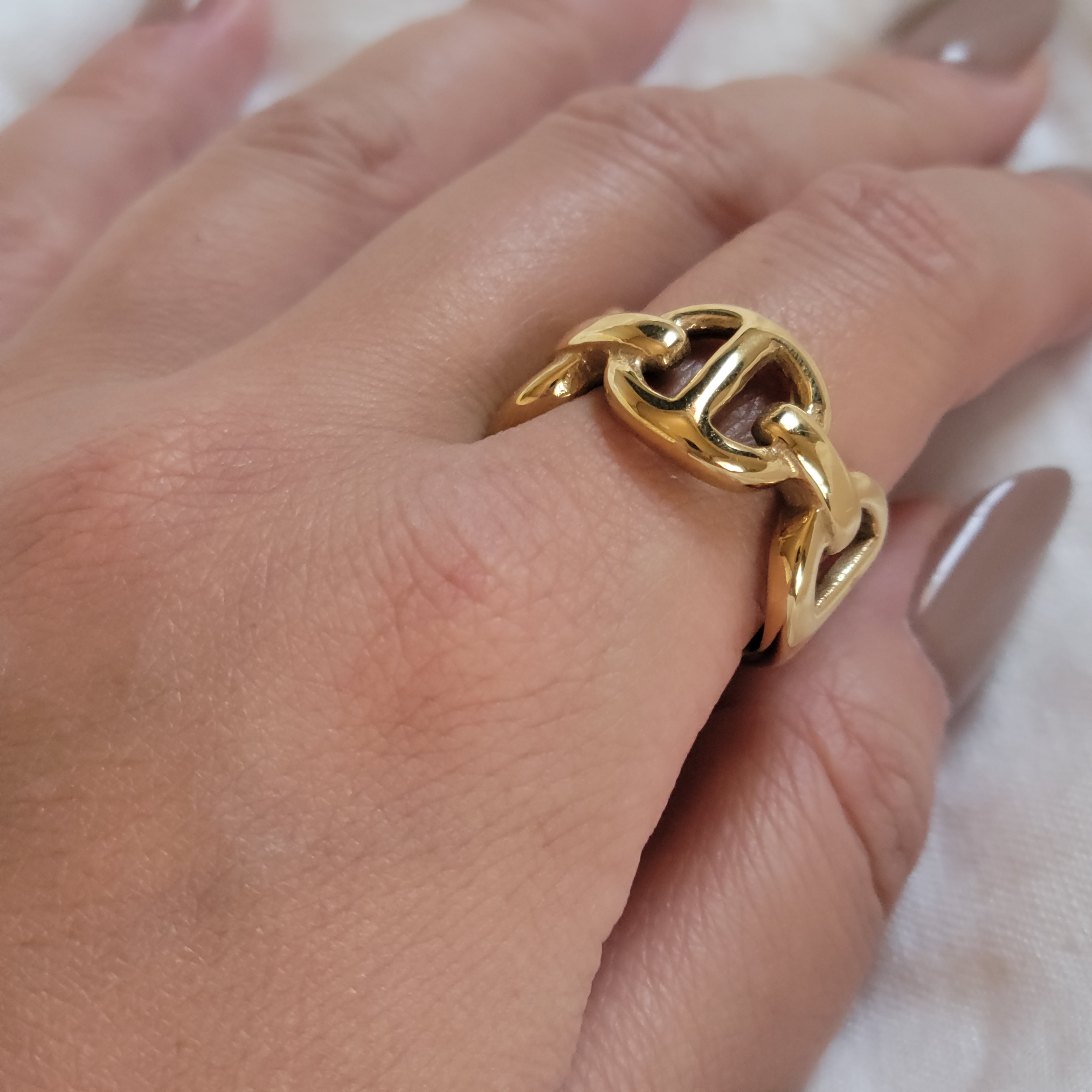 # 013 Gilded Link Ring|アンカーチェーン デザイン ゴールド ボリューム リング レディース ステンレス 18KGP 指輪 海外風 大人海外スタイル 金属アレルギー対応 ゴールドアクセサリー | Ork Marry|金属アレルギー対応 大人の海外風アクセサリー