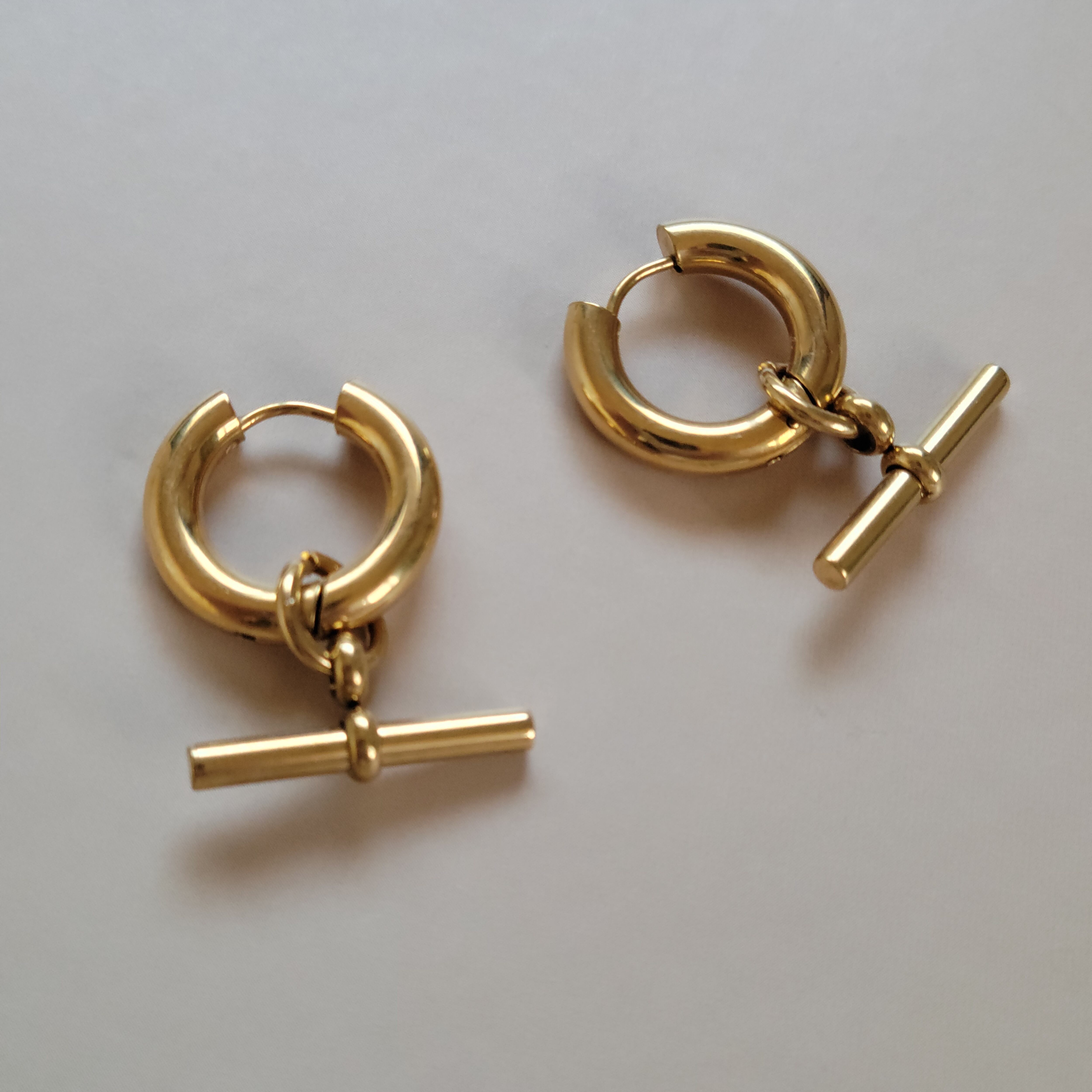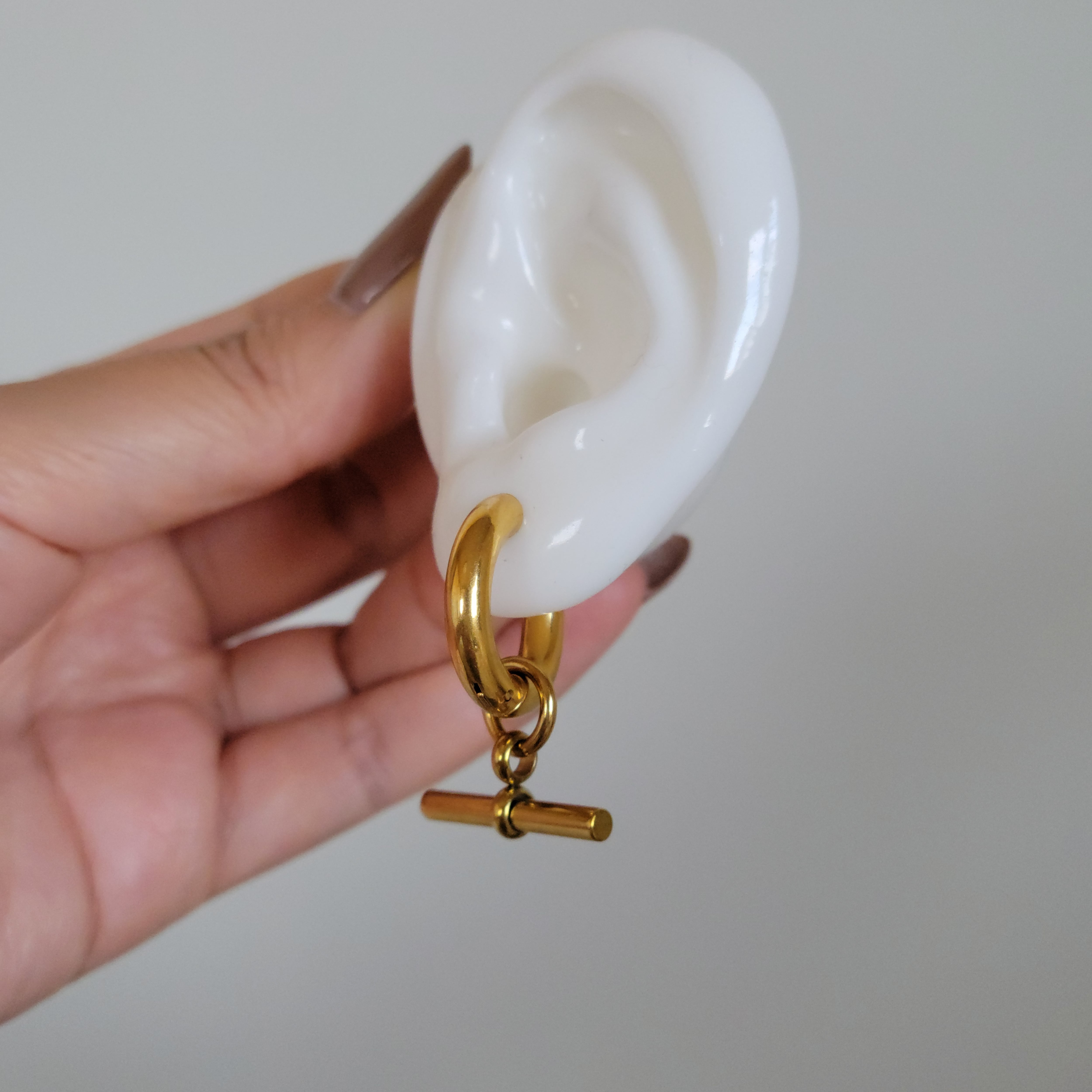Bar Charm Hoop Earrings|18K Coating on Stainless|Gold
