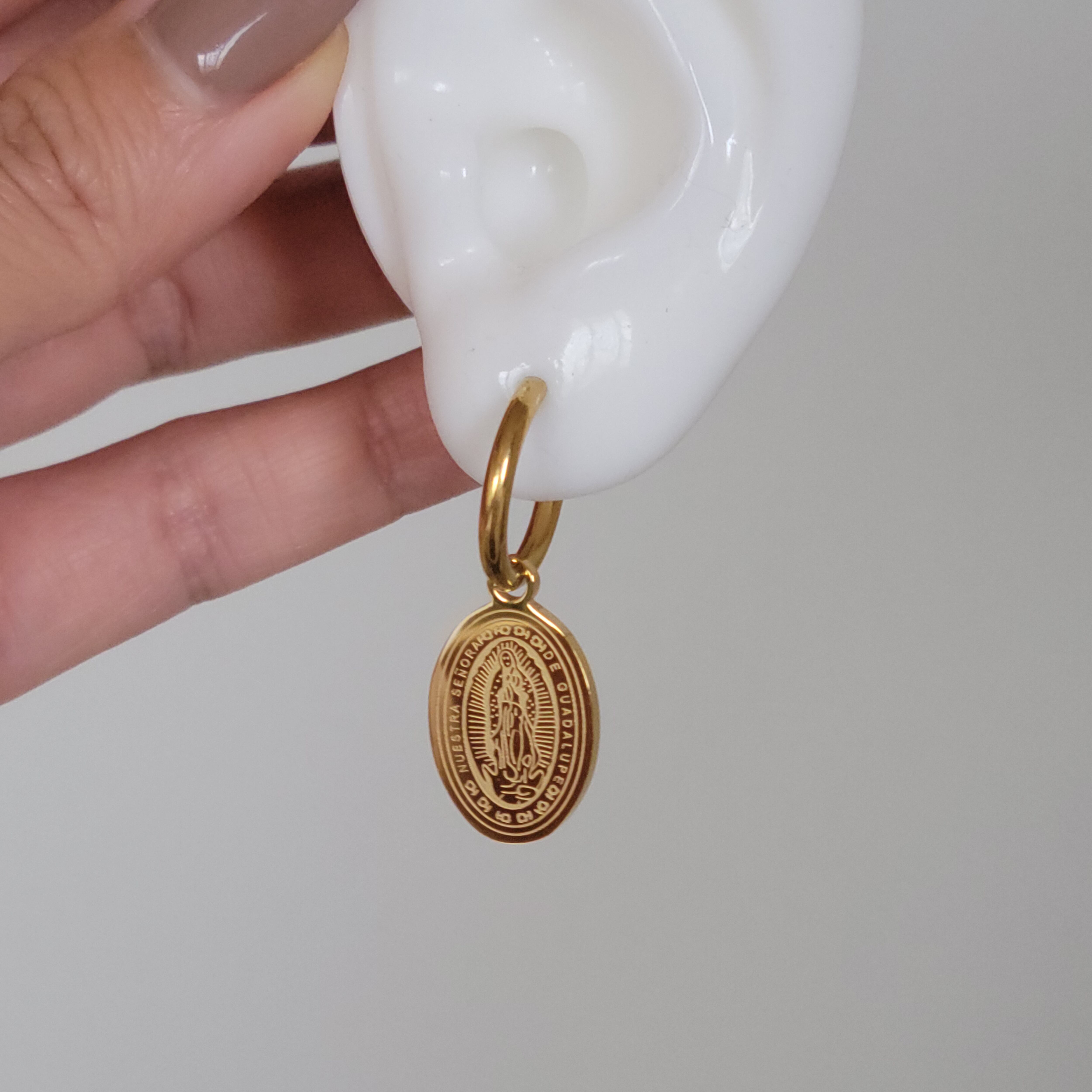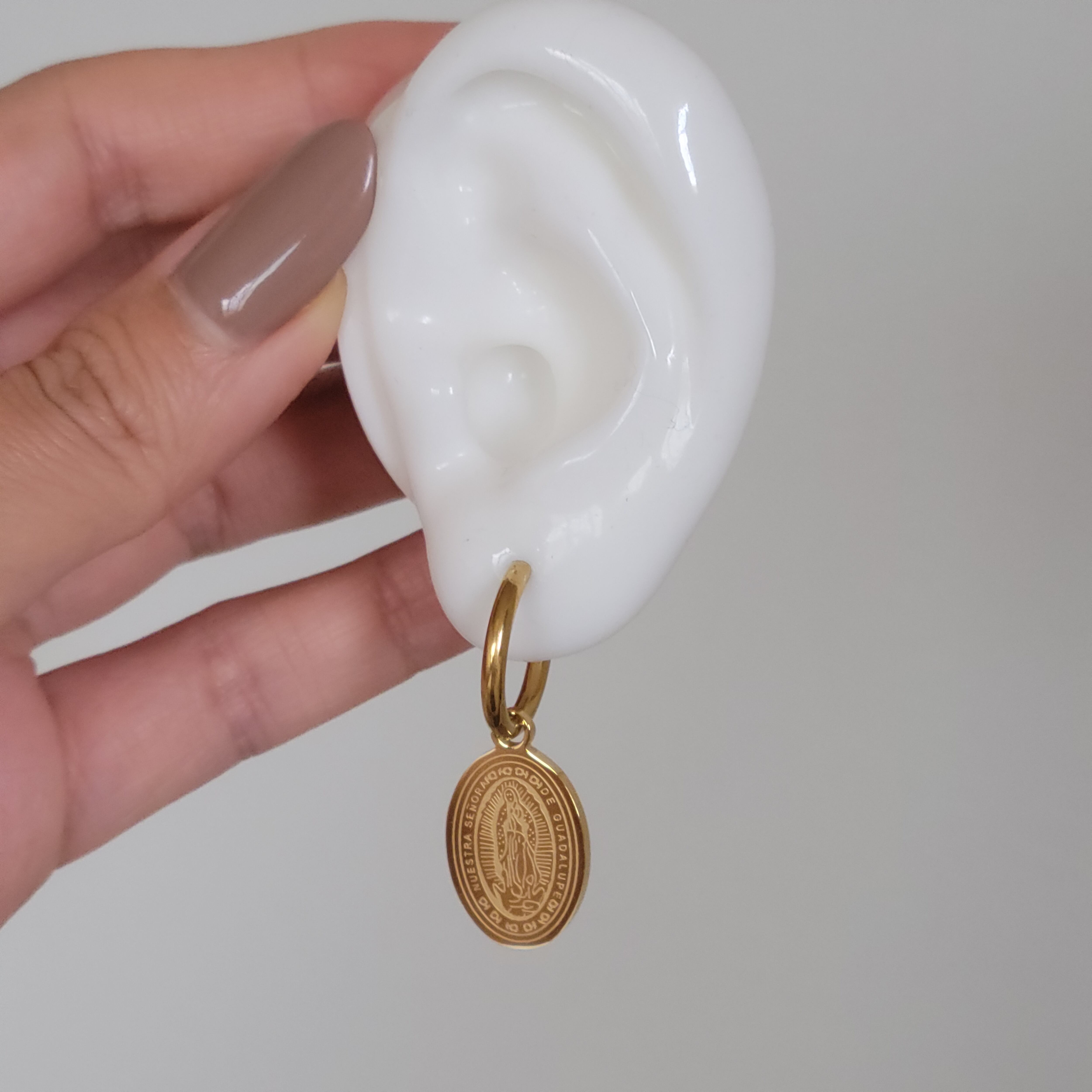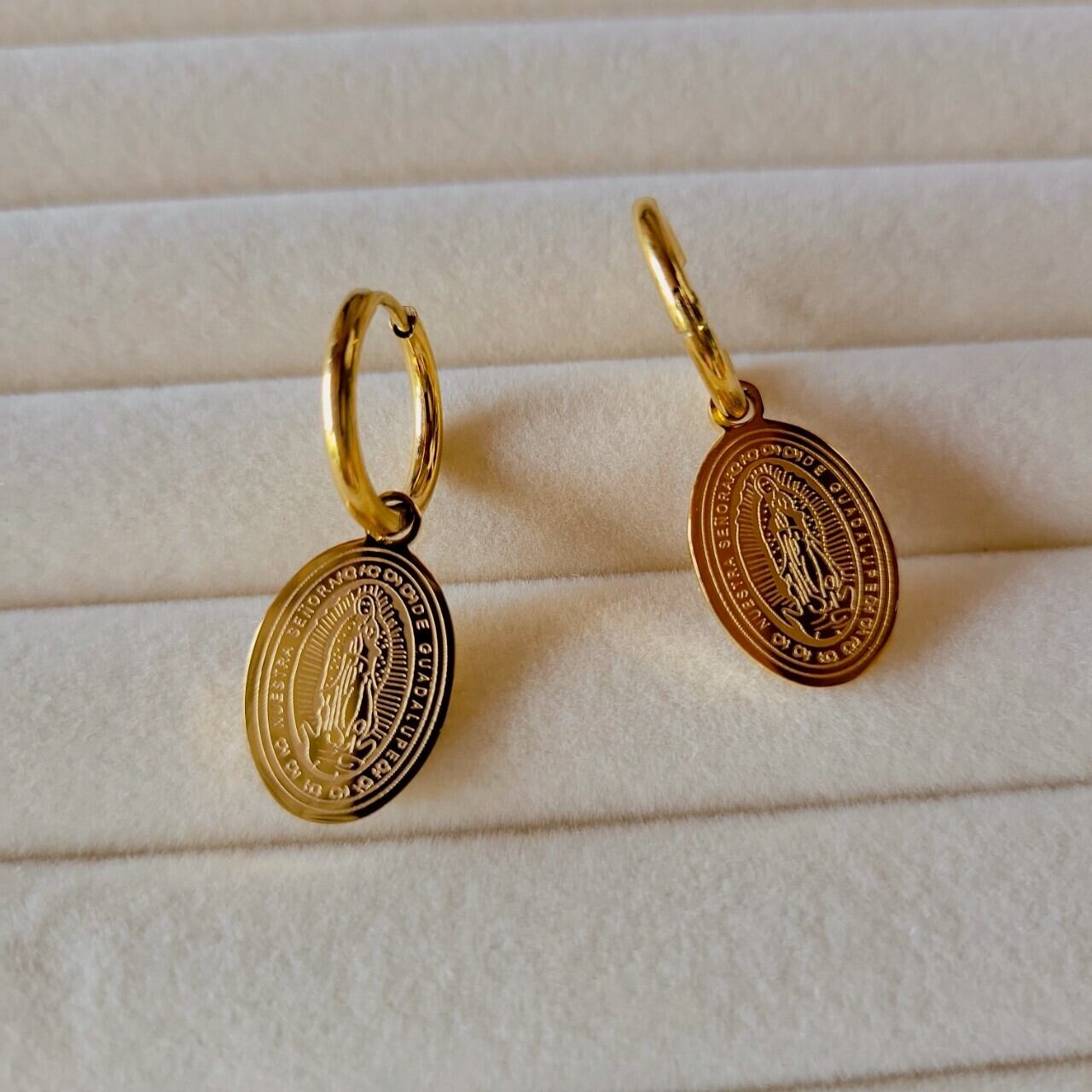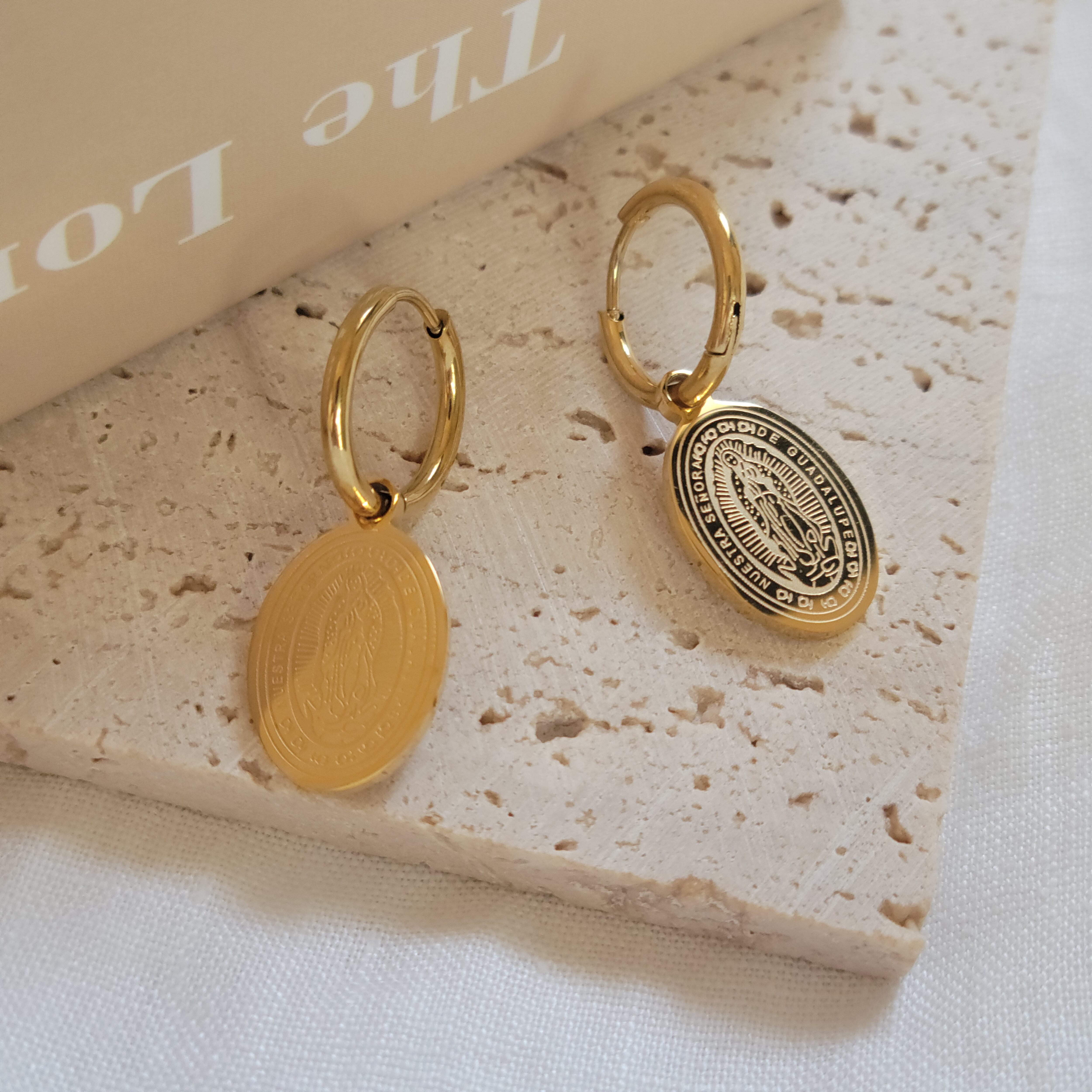 #015 Divine Maria|聖母マリア ゴールド レディース ピアス ステンレス 18KGP メダル コイン プレート 大人 海外風 海外スタイル 金属アレルギー対応 ゴールドアクセサリー | Ork Marry|金属アレルギー対応 大人の海外風アクセサリー