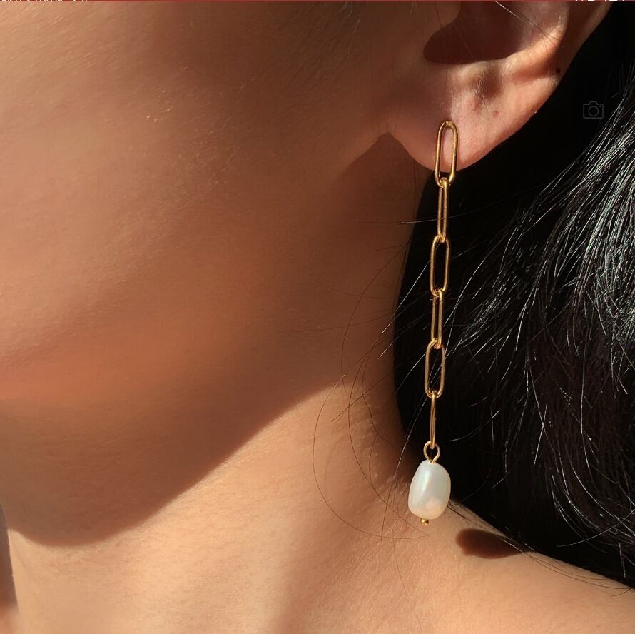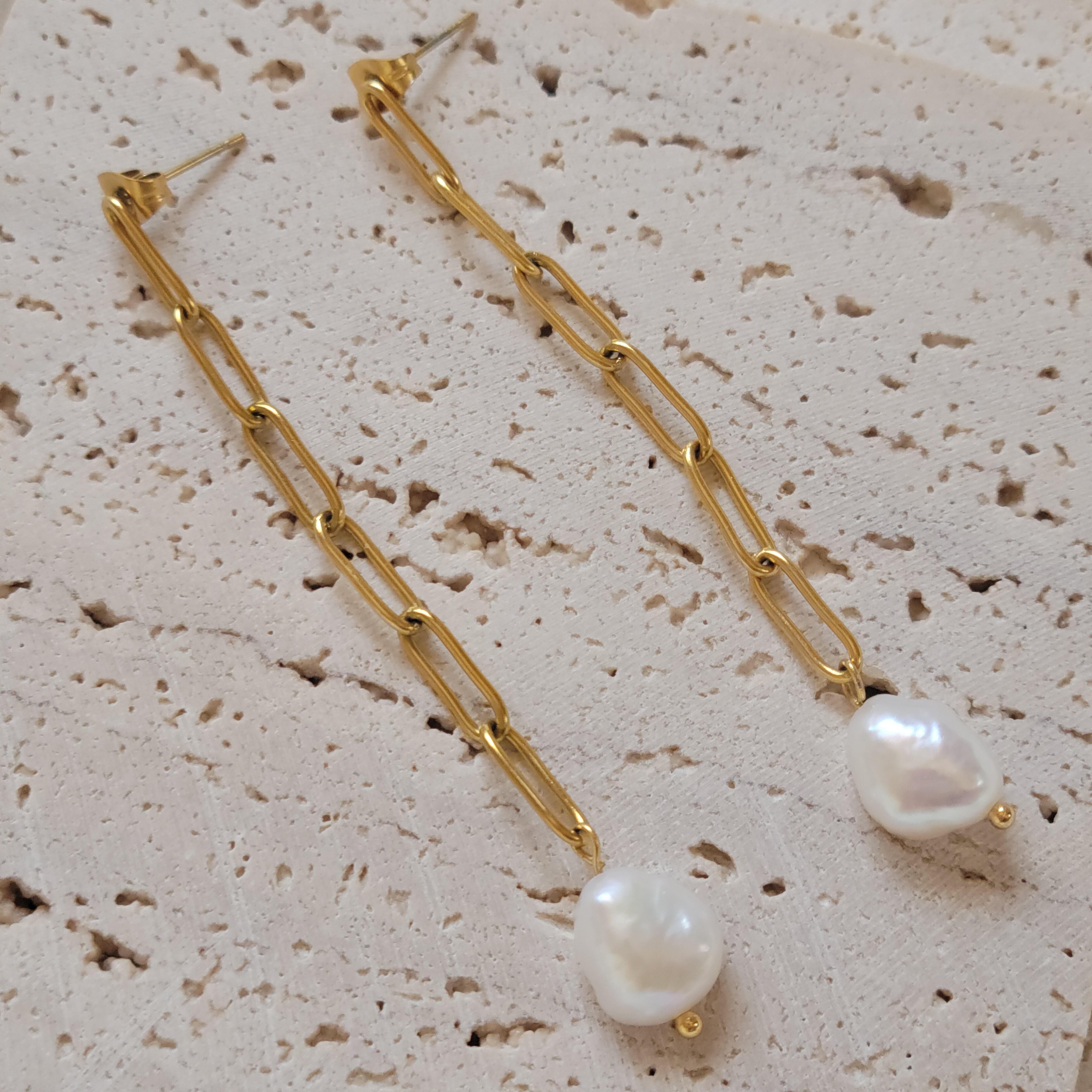 #009 chain pearl |淡水パール チェーン ドロップダウン ピアス 揺れる レディース 海外風 海外スタイル 金属アレルギー対応 ゴールドアクセサリー | Ork Marry|金属アレルギー対応 大人の海外風アクセサリー