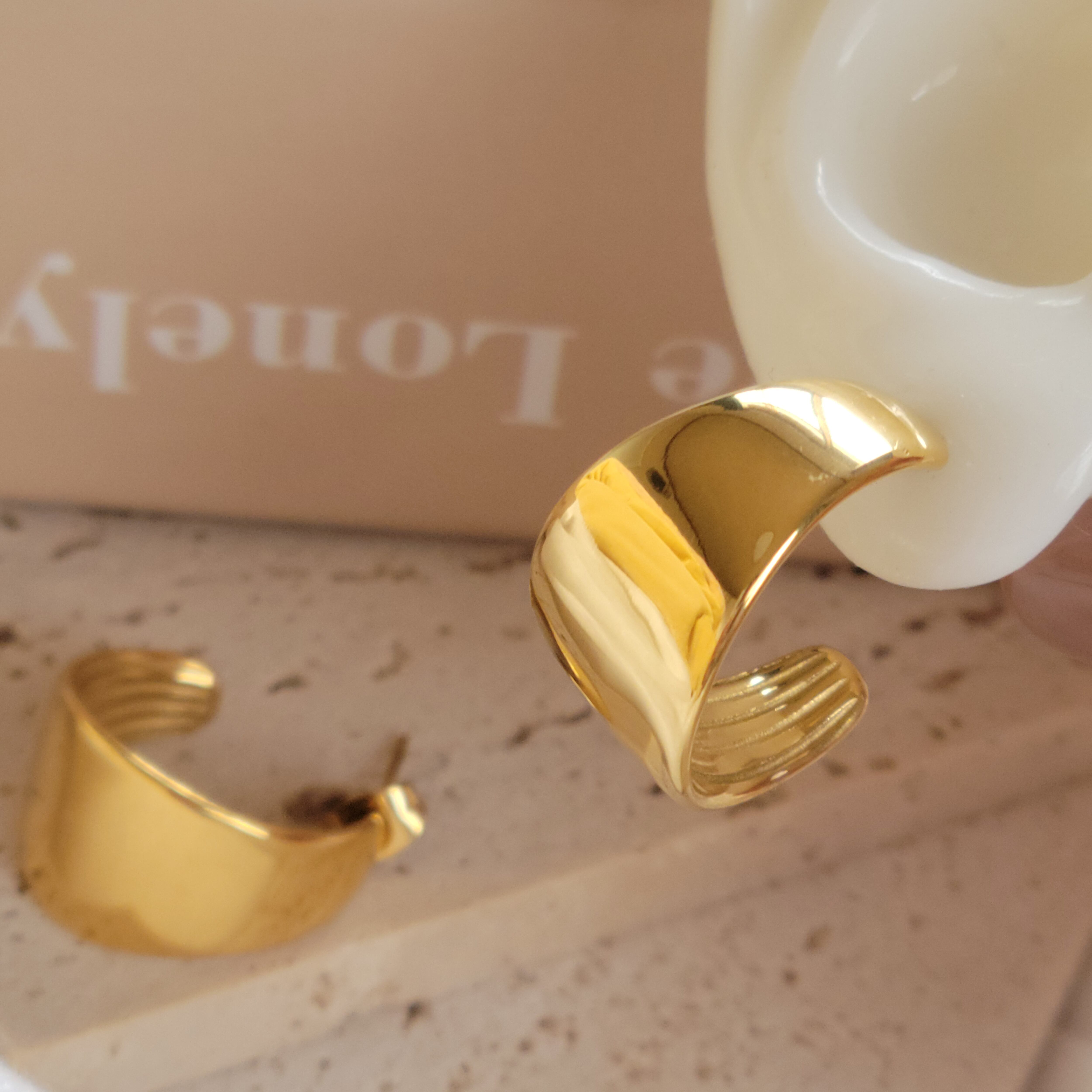 ムードを纏う、ラグジュアリーなゴールドピアス。