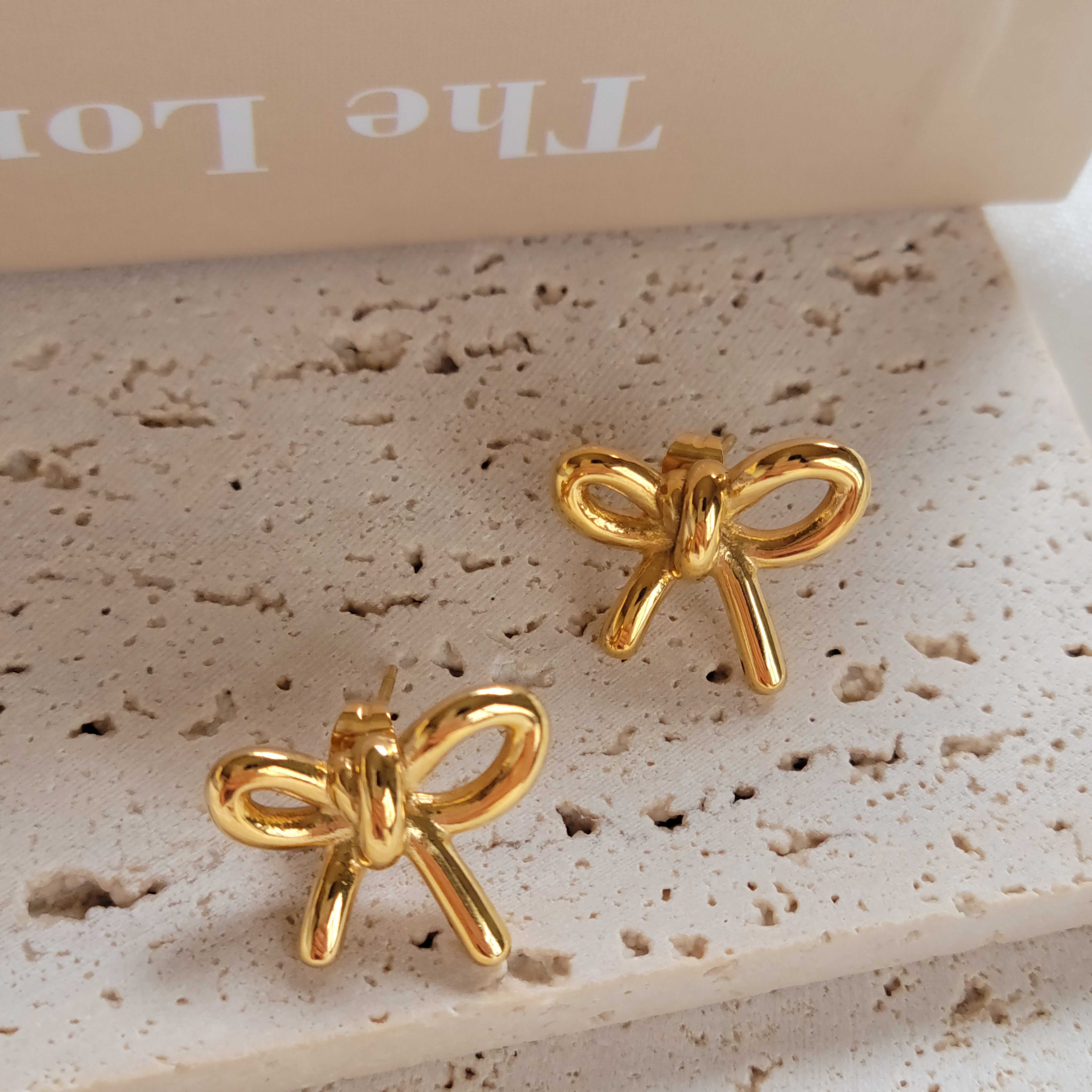 #002 bow piace | ゴールド 結び 大人 リボン レディース ピアス ステンレス 18K Gold Plated 316L Stainless steel ノット not 大人 高見え インポート 海外スタイル 海外風 金属アレルギー対応 ゴールド アクセサリー | Ork Marry|金属アレルギー対応 大人の海外風アクセサリー